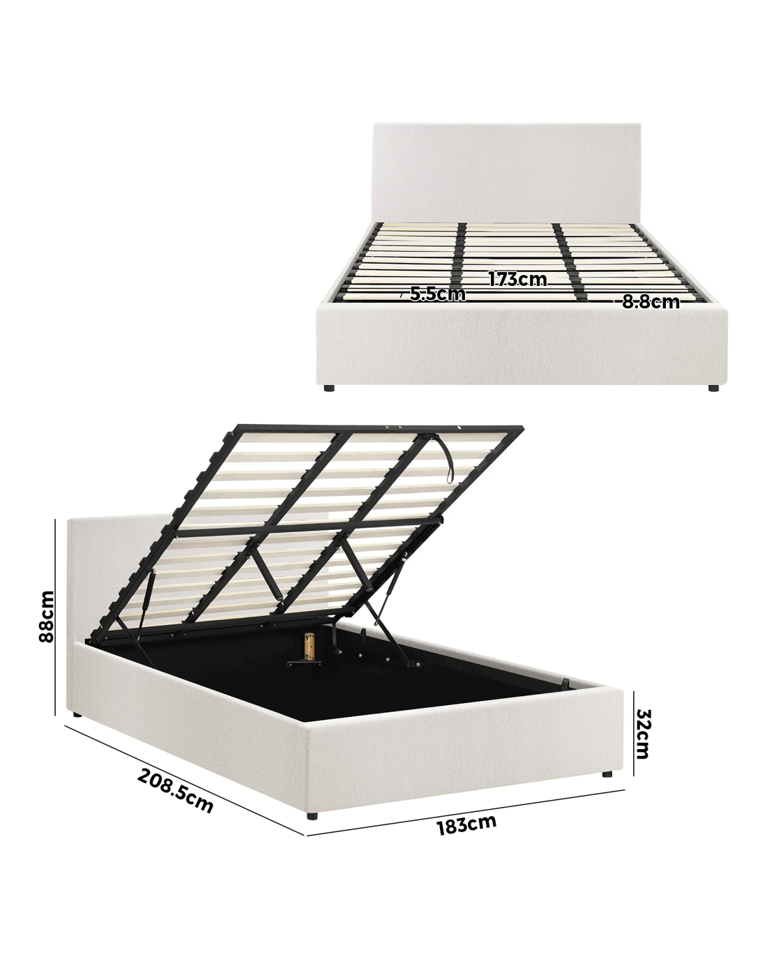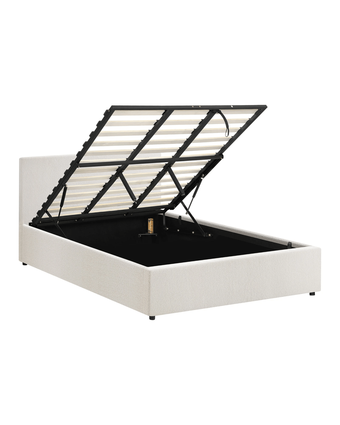 Sold by Kamprad's Oikos 1943Oikiture King Bed Frame Gas Lift Base With Storage Boucle - White