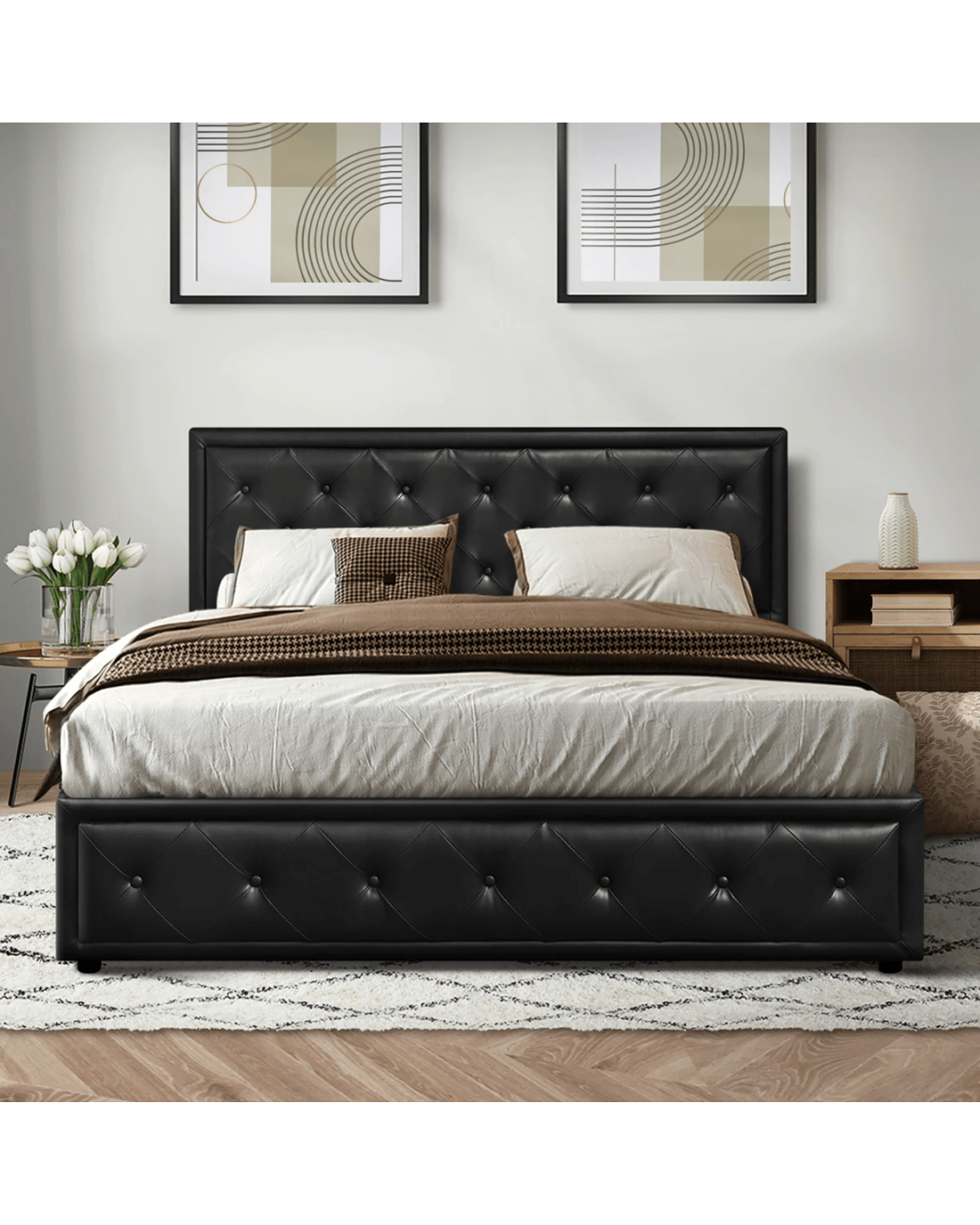 Get the ultimate space saver with Oikiture Gas Lift Bed Frame that is a contemporary and classic piece that gives you room an instant lift of elegance and style. Upholstered with premium PU leather and great attention to detail, it's going for the perfect designer look.