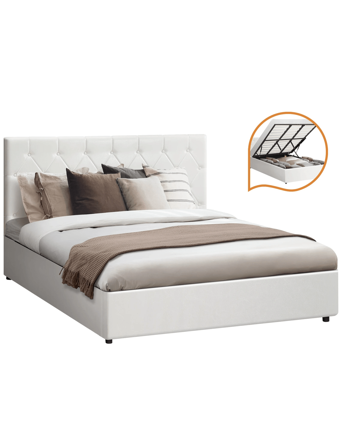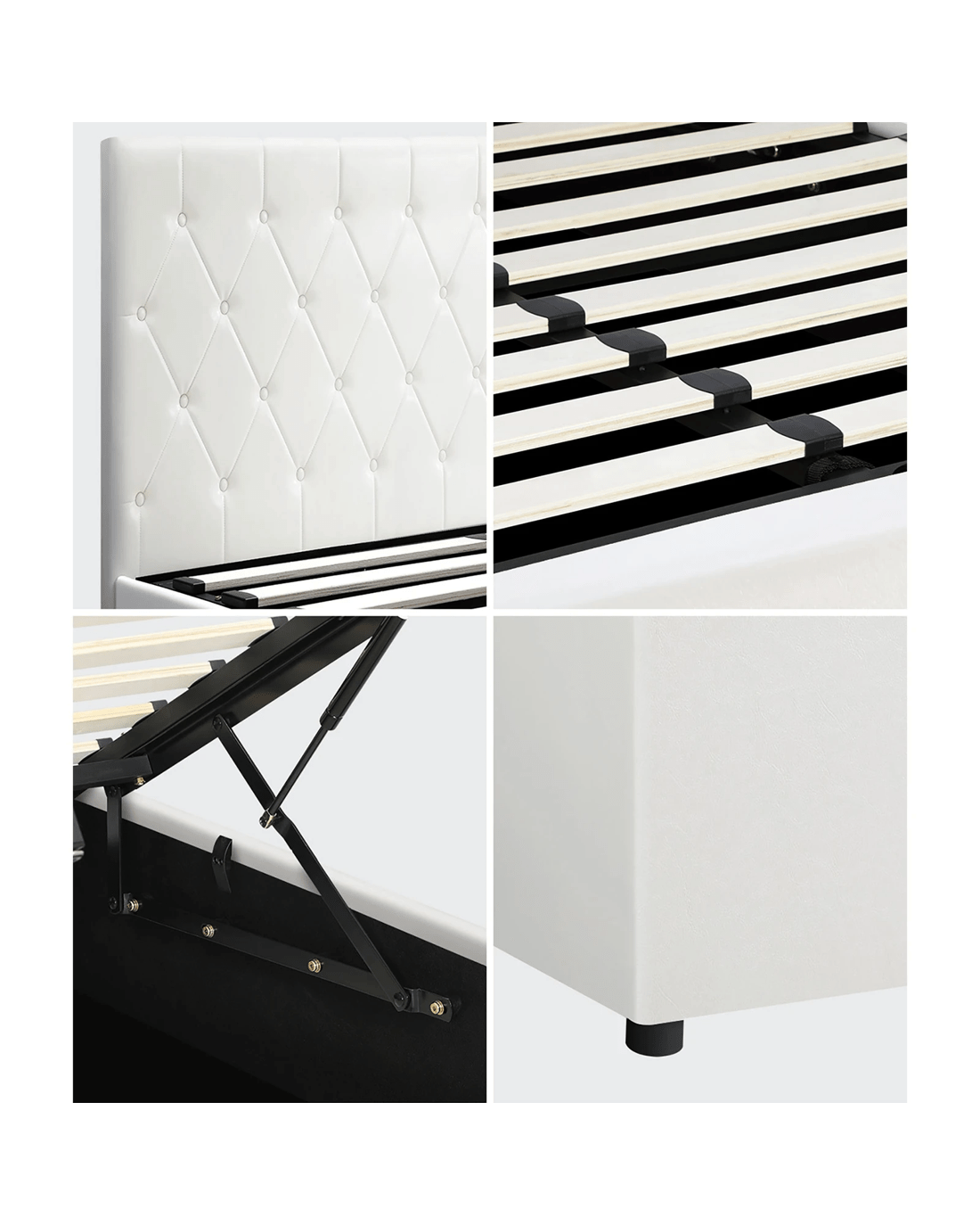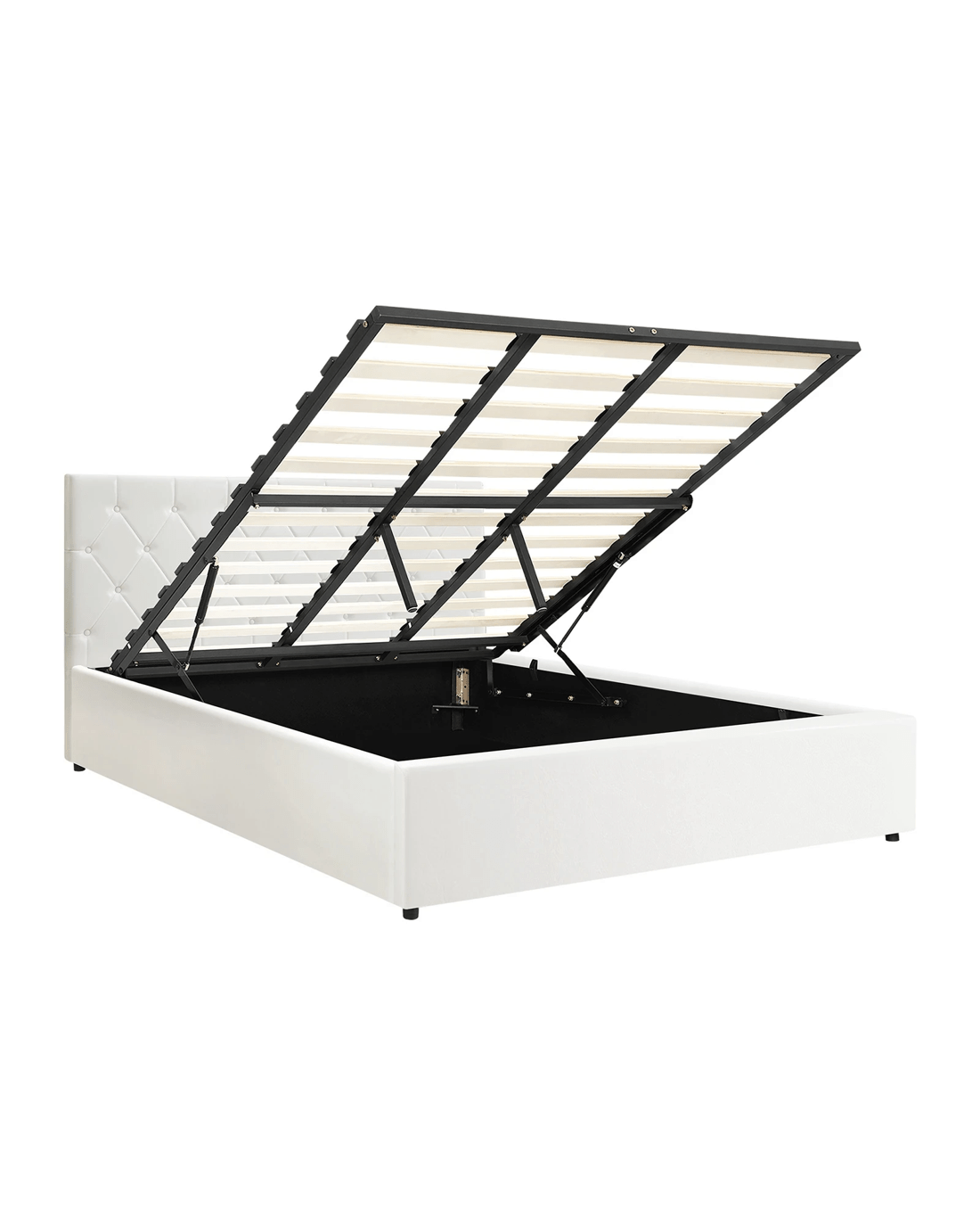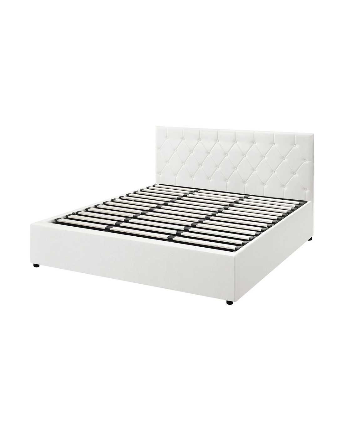 Oikiture King Bed Frame Gas Lift Storage Base - White