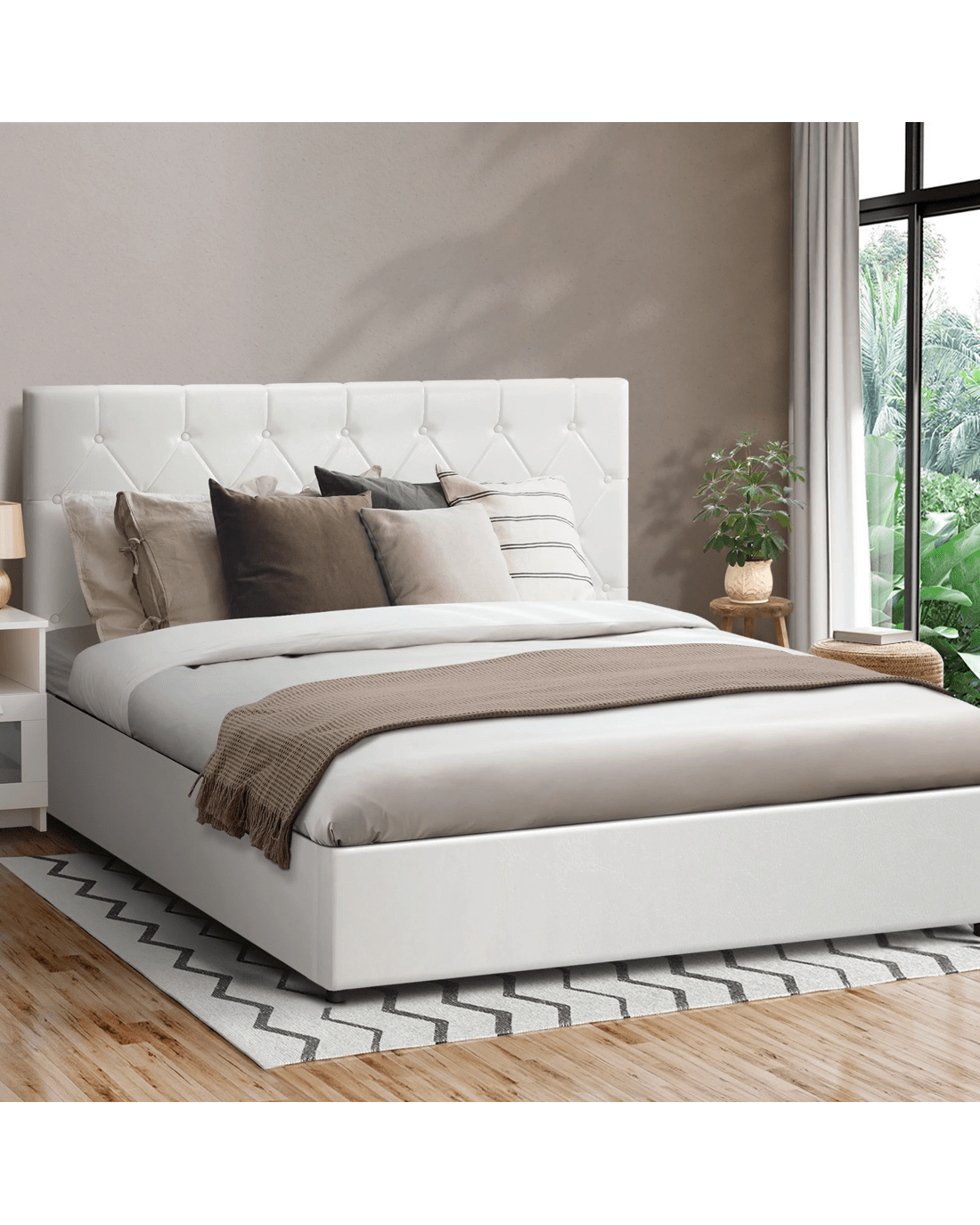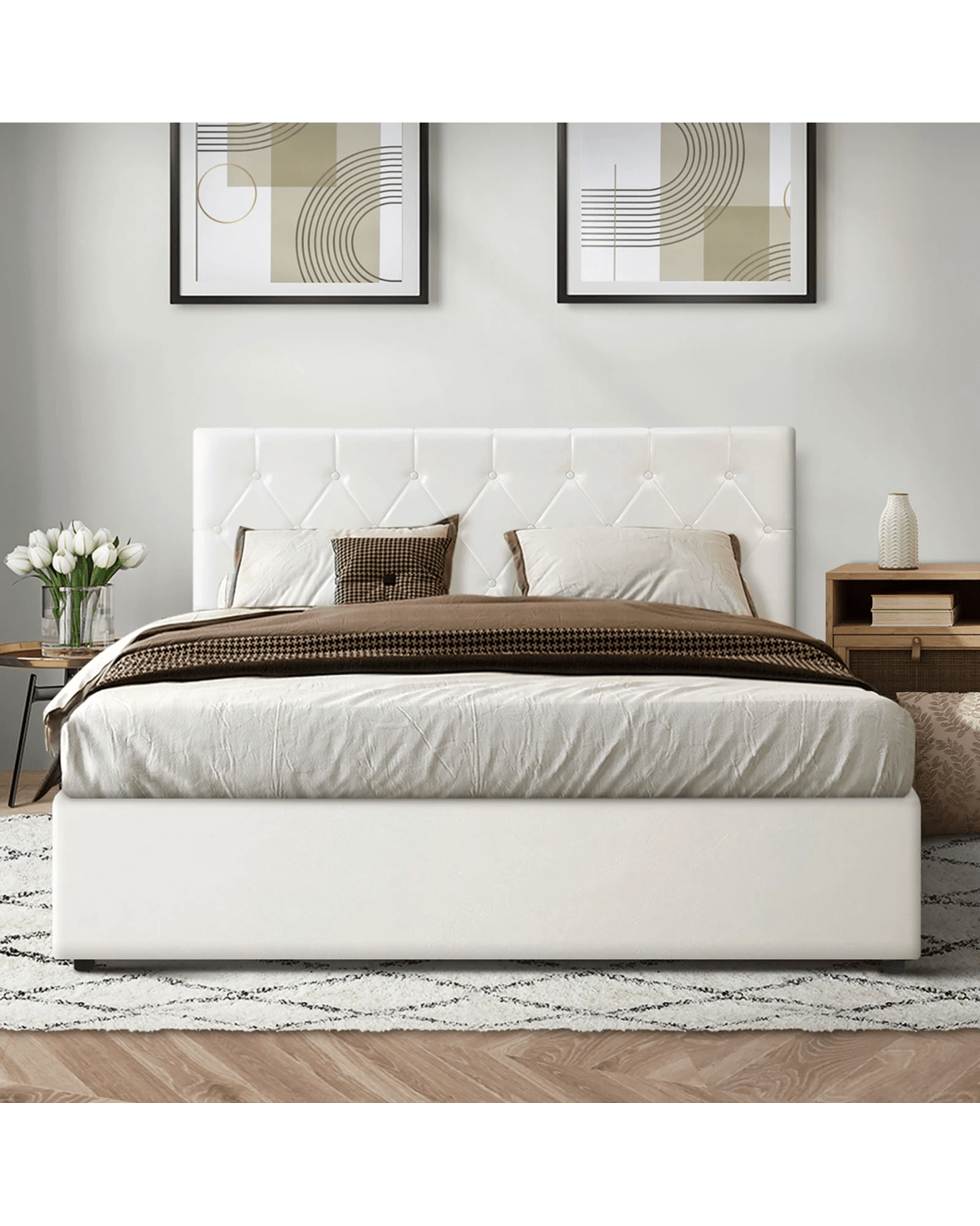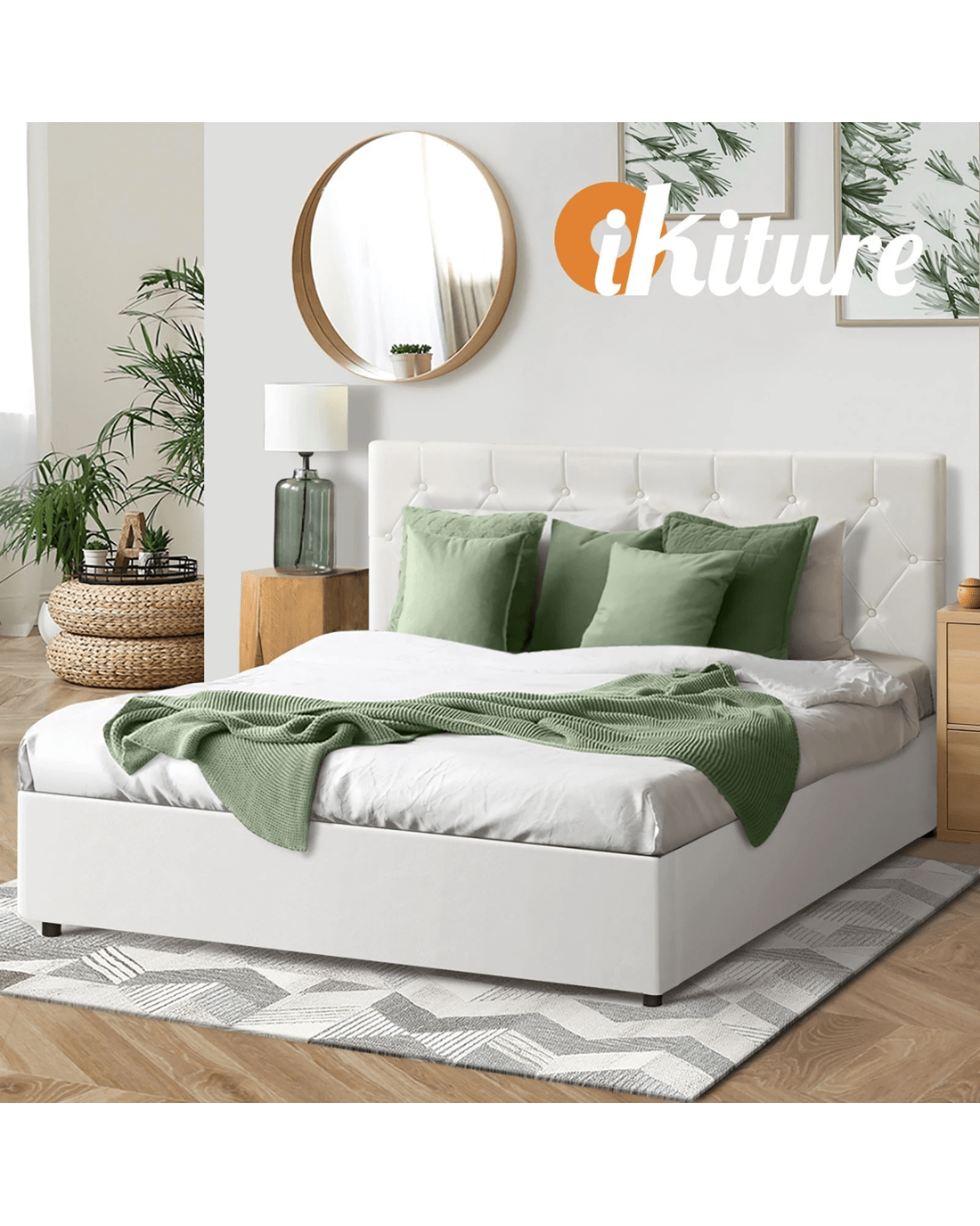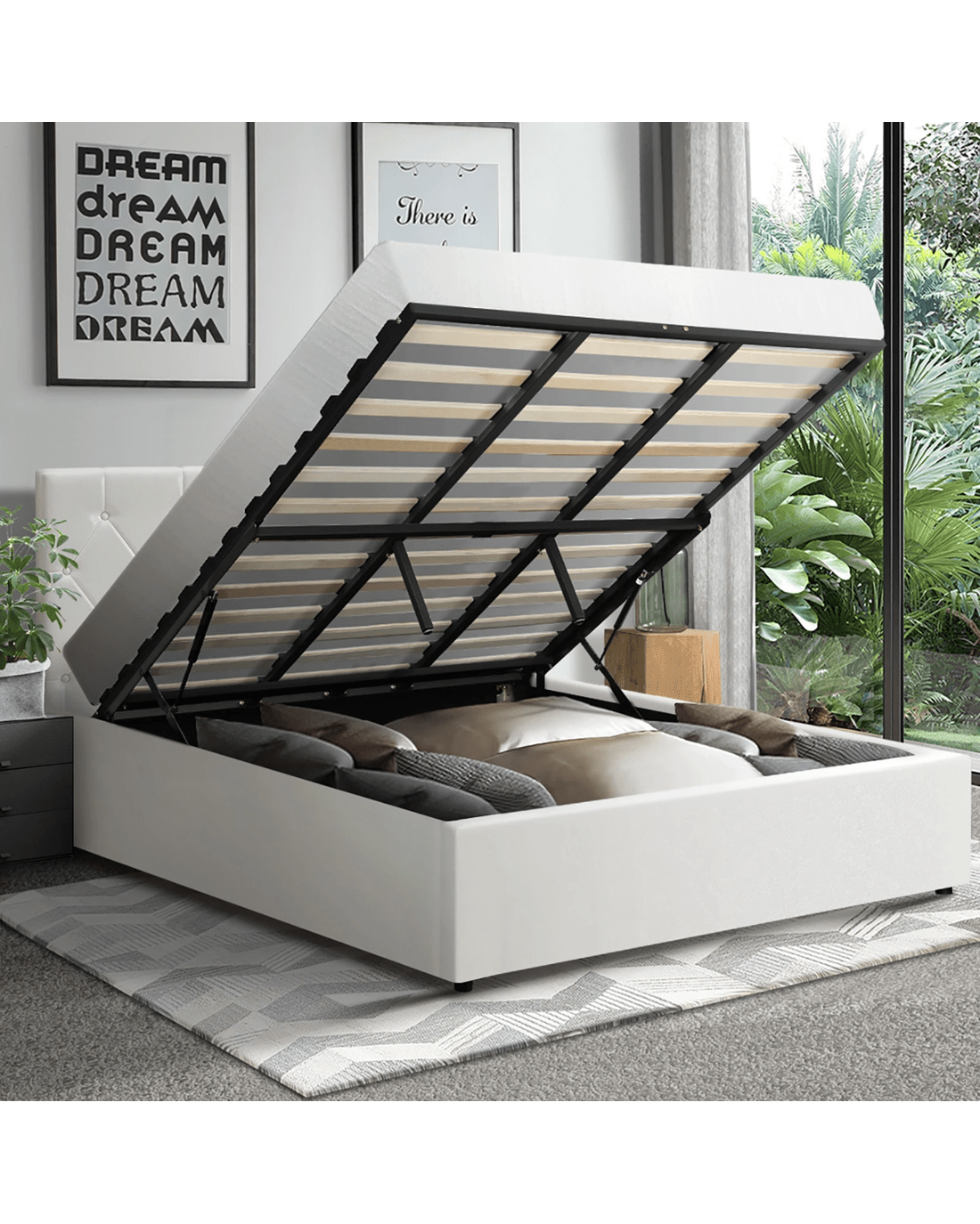 Oikiture King Bed Frame Gas Lift Storage Base - White