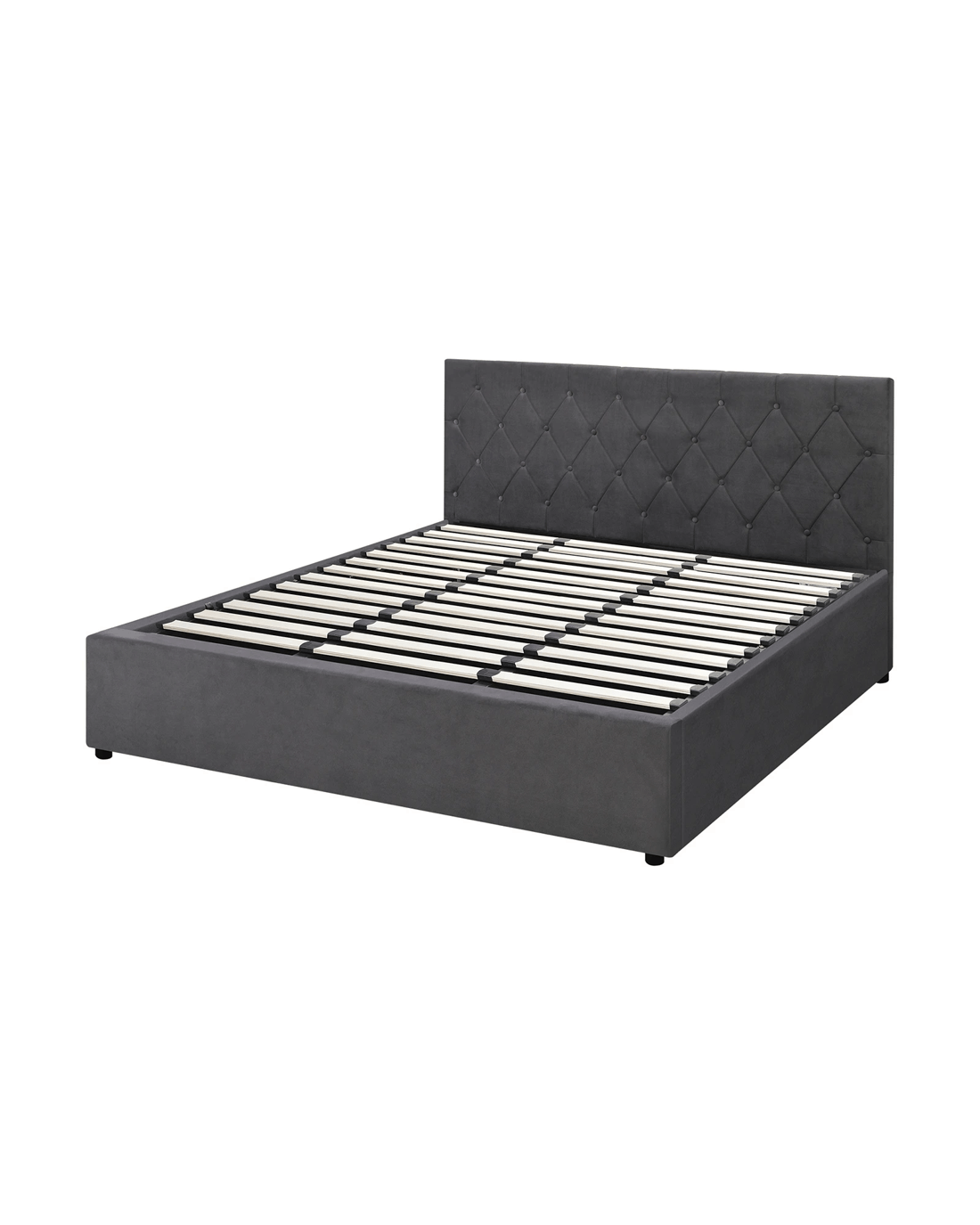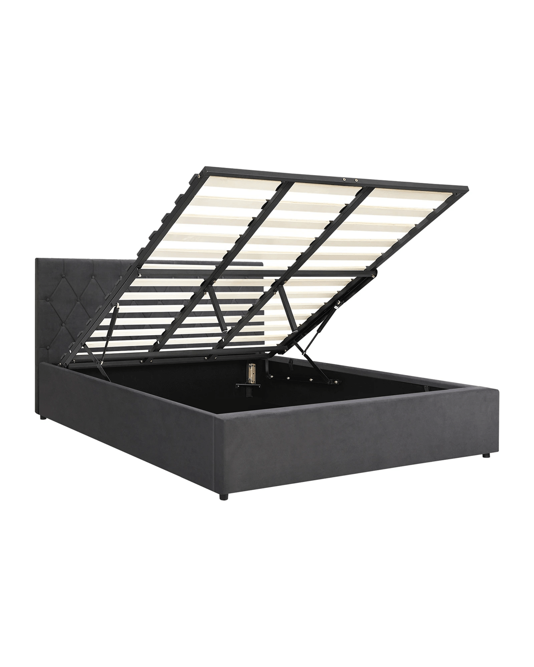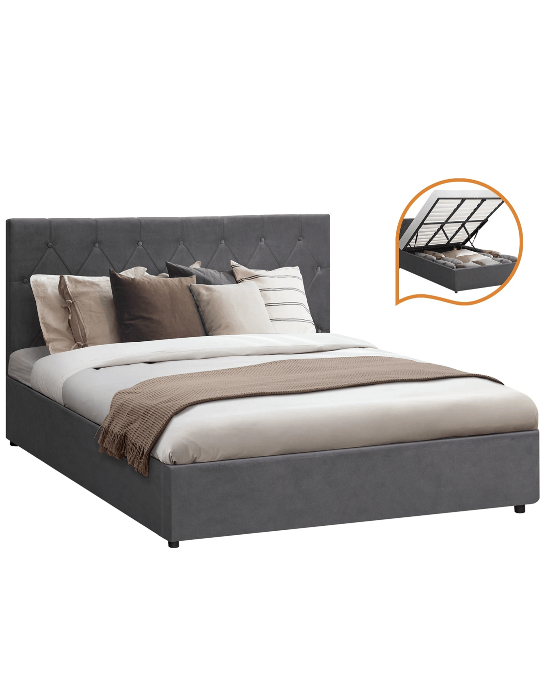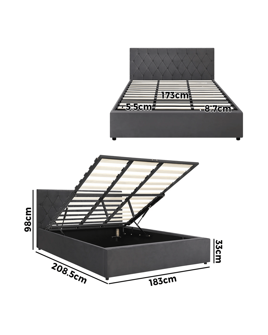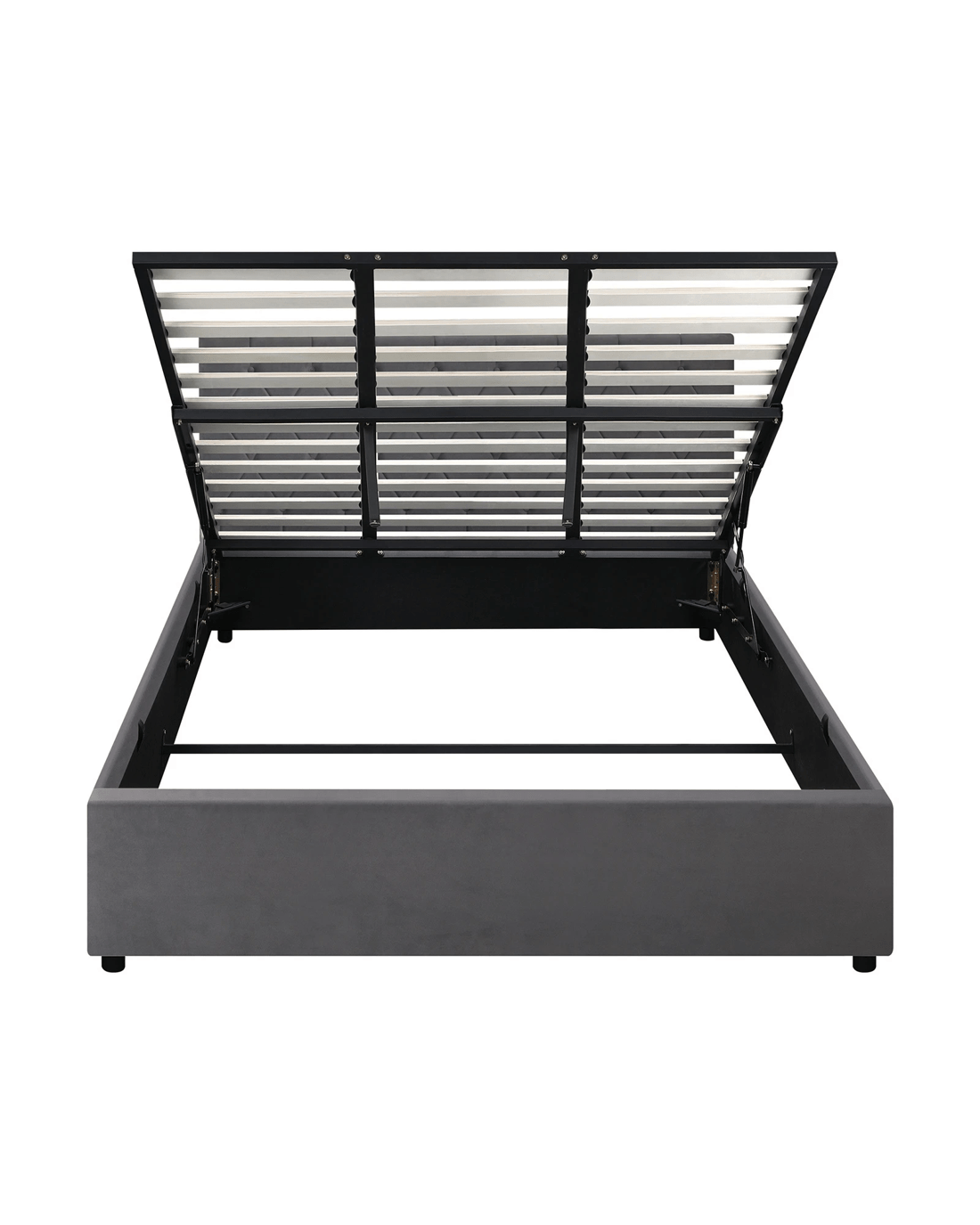 Sold by Kamprad's Oikos 1943Oikiture King Bed Frame With Gas Lift Storage Base Velvet - Grey