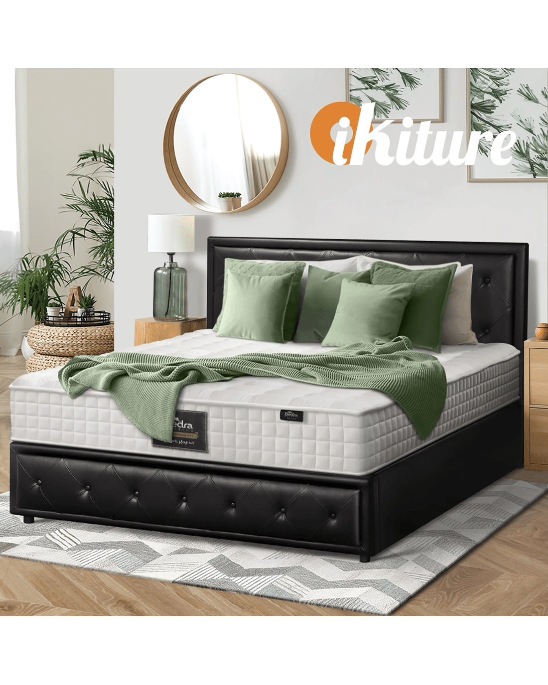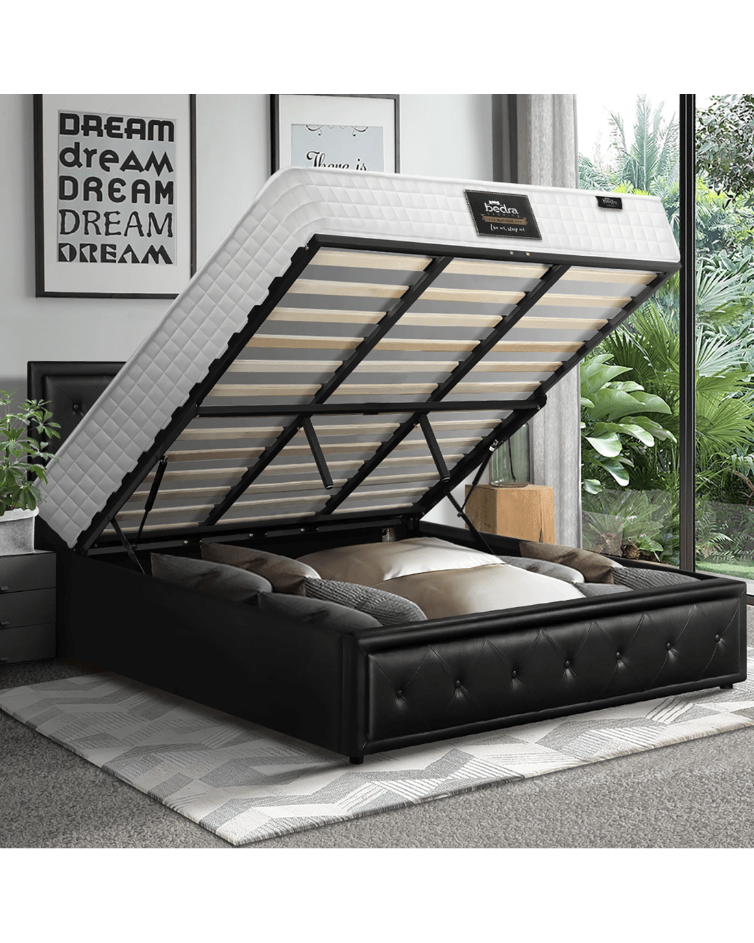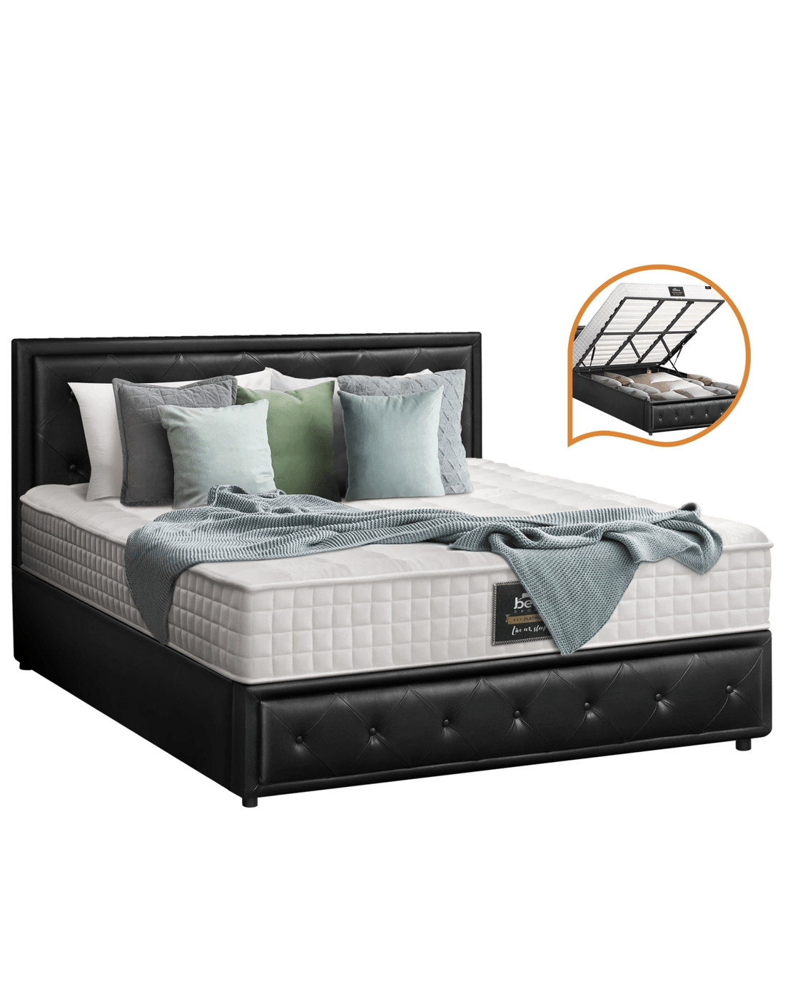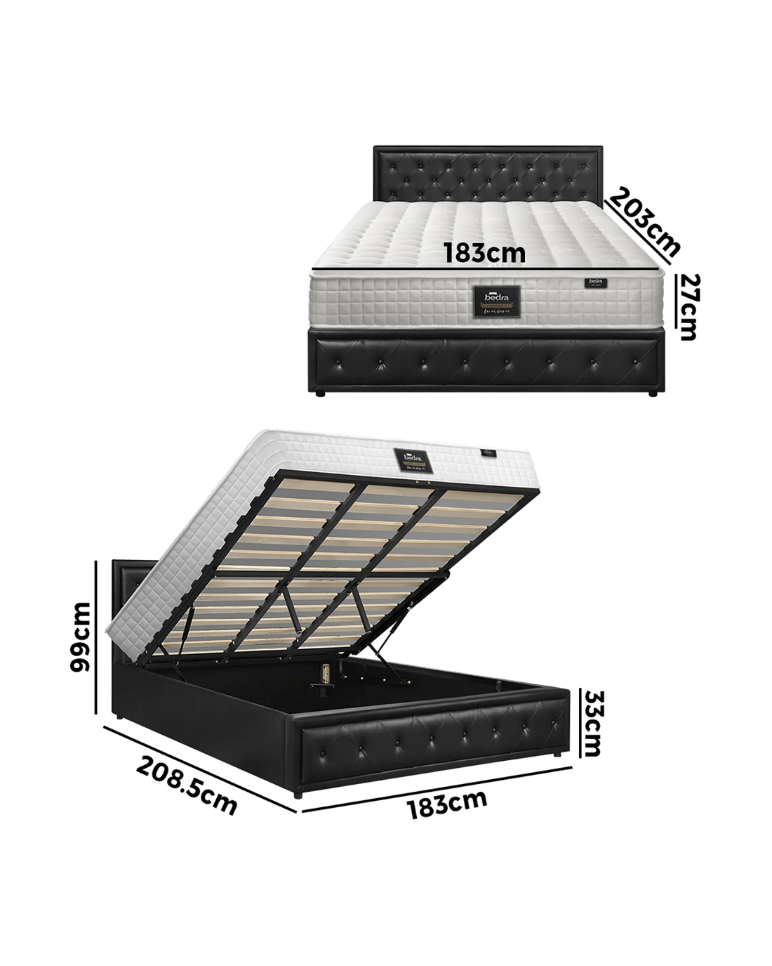 Sold by Kamprad's Oikos 1943Oikiture King Bed Gas Lift Storage Base With Mattress Set - Black