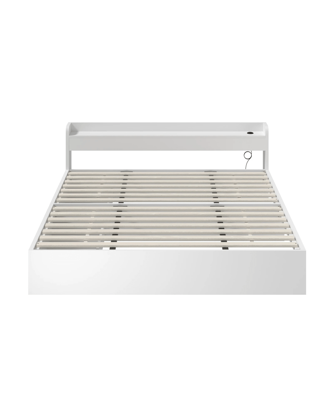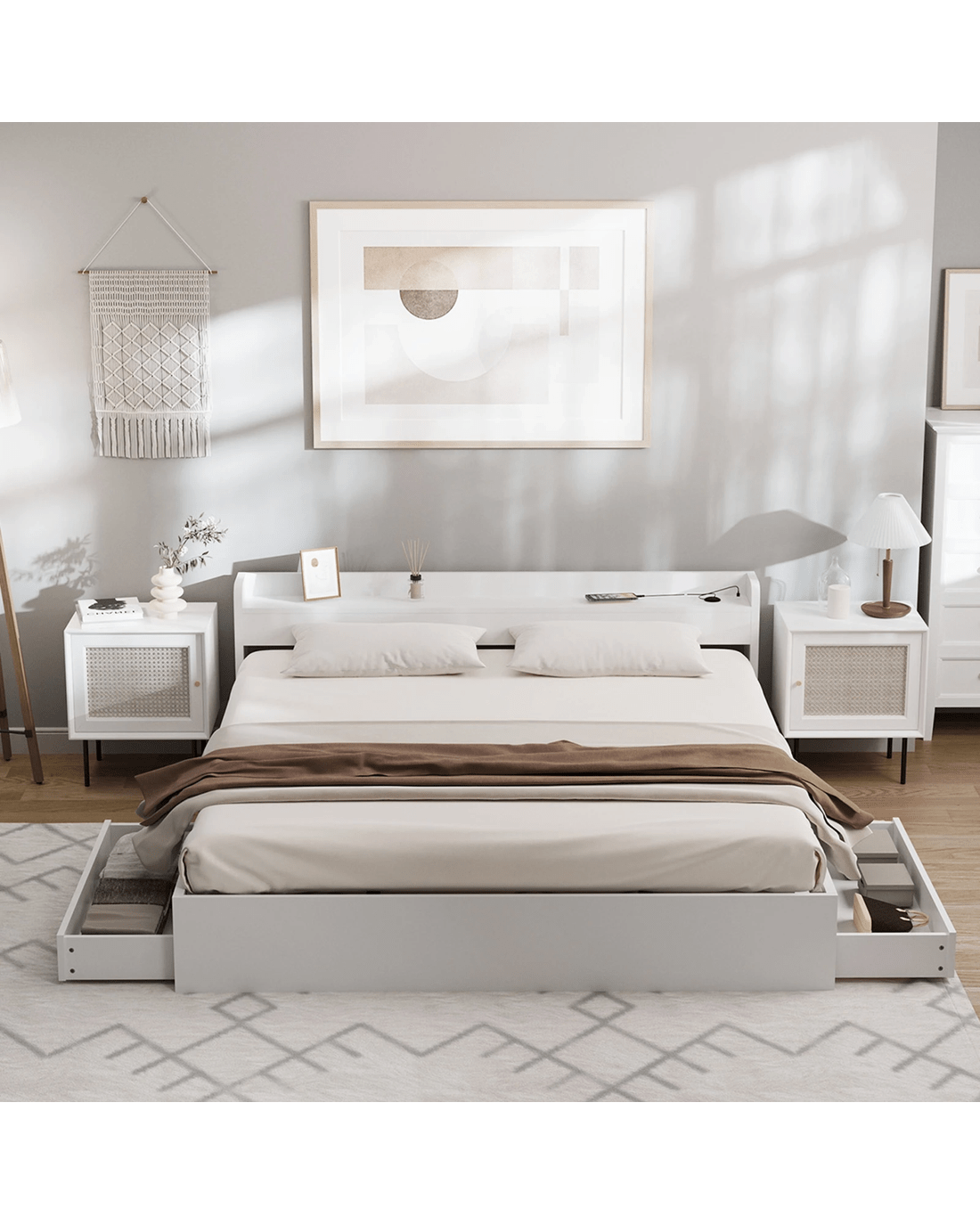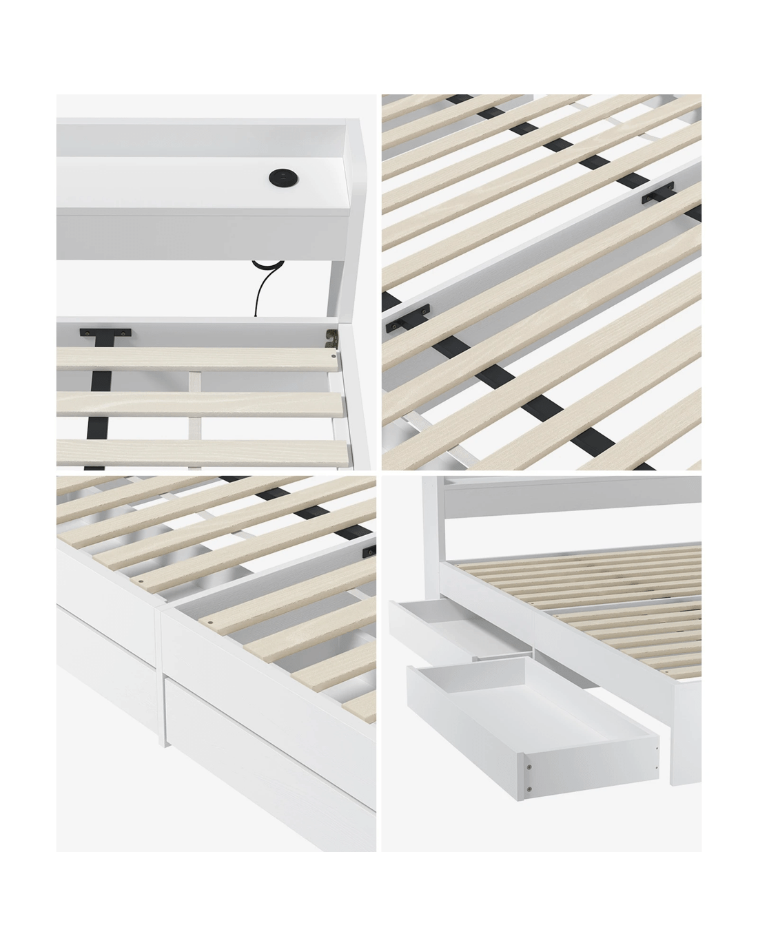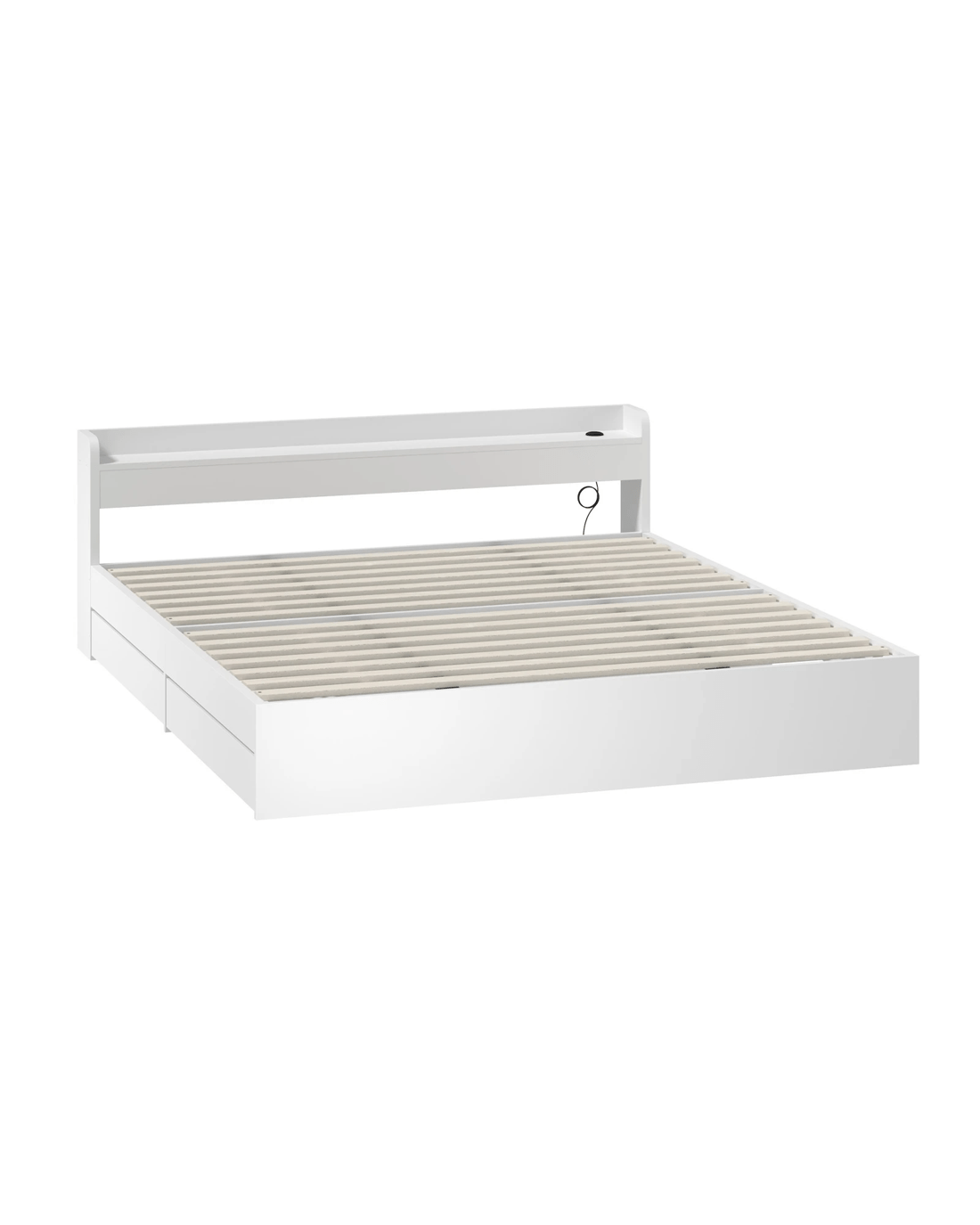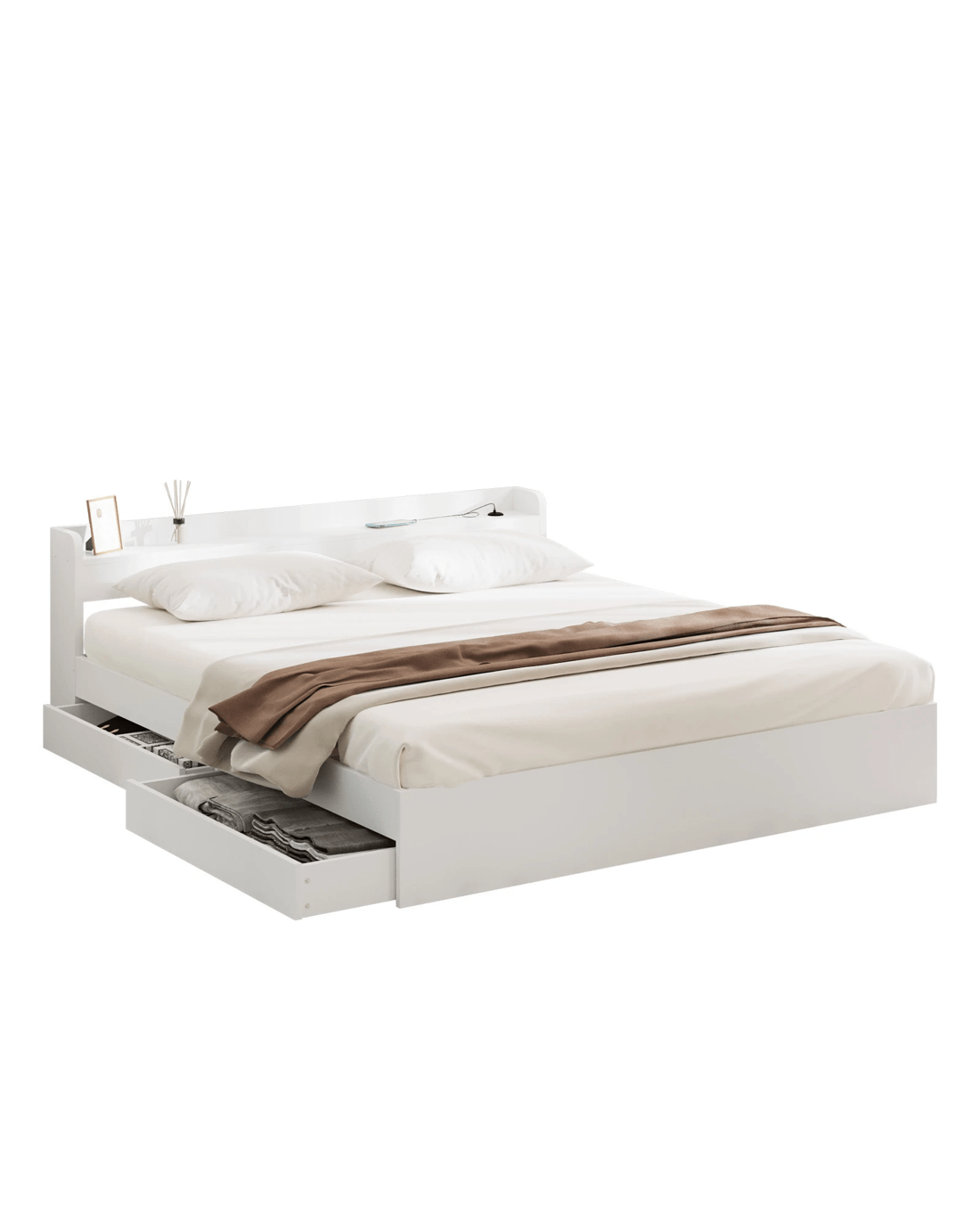 Sold by Kamprad's Oikos 1943Oikiture King Bed With Charging Ports & 2 Drawers Timber Bed Frame - White