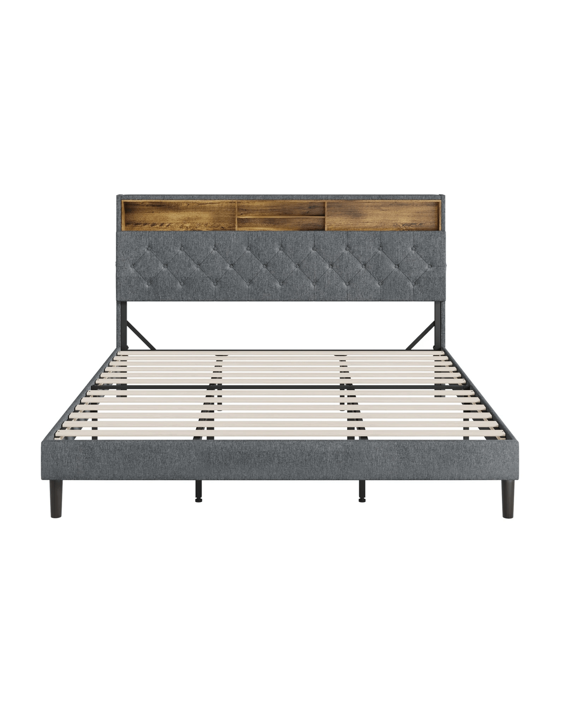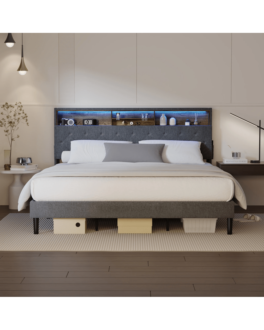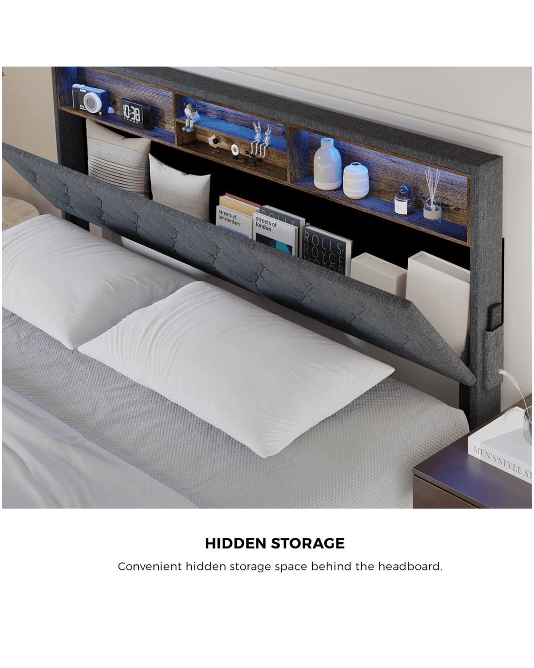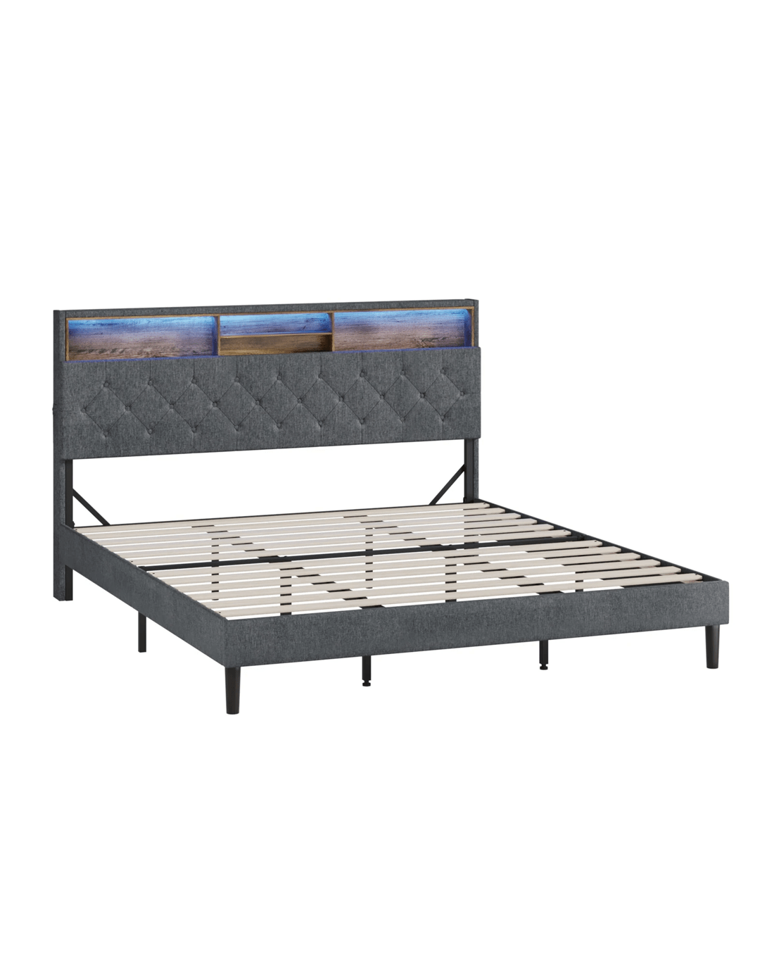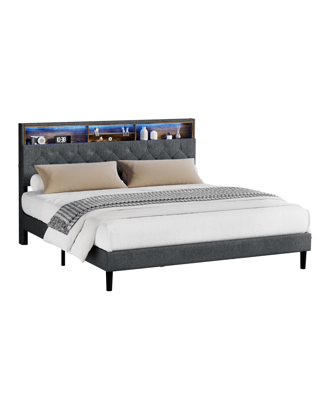 Sold by Kamprad's Oikos 1943Oikiture King Bed With Led Storage Bedhead Bed Frame - Grey