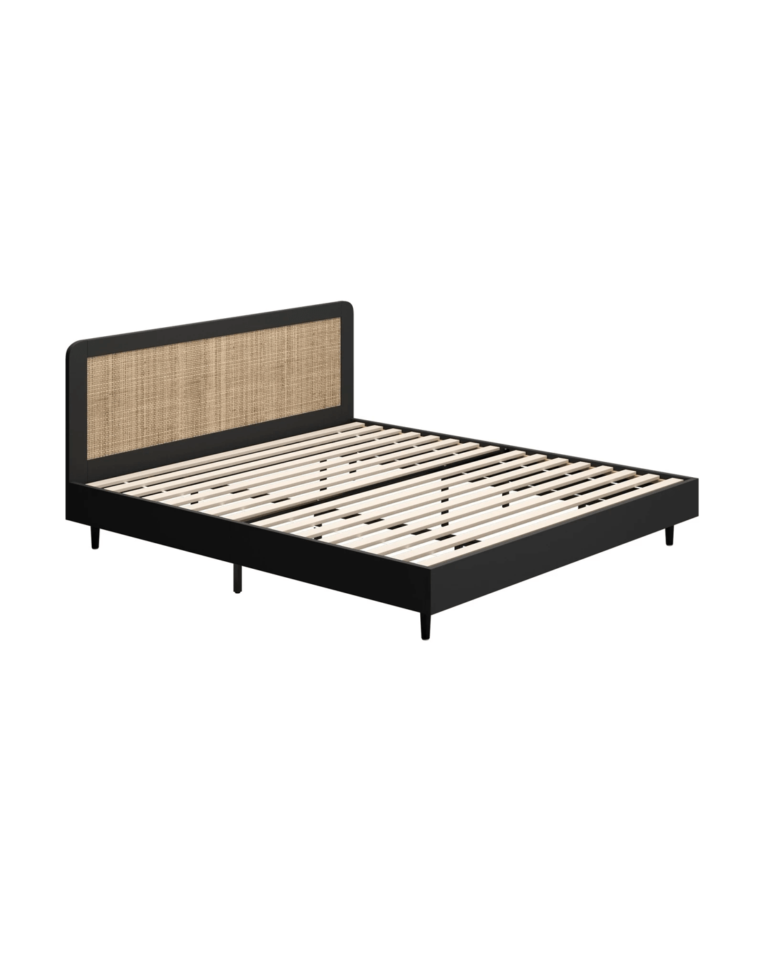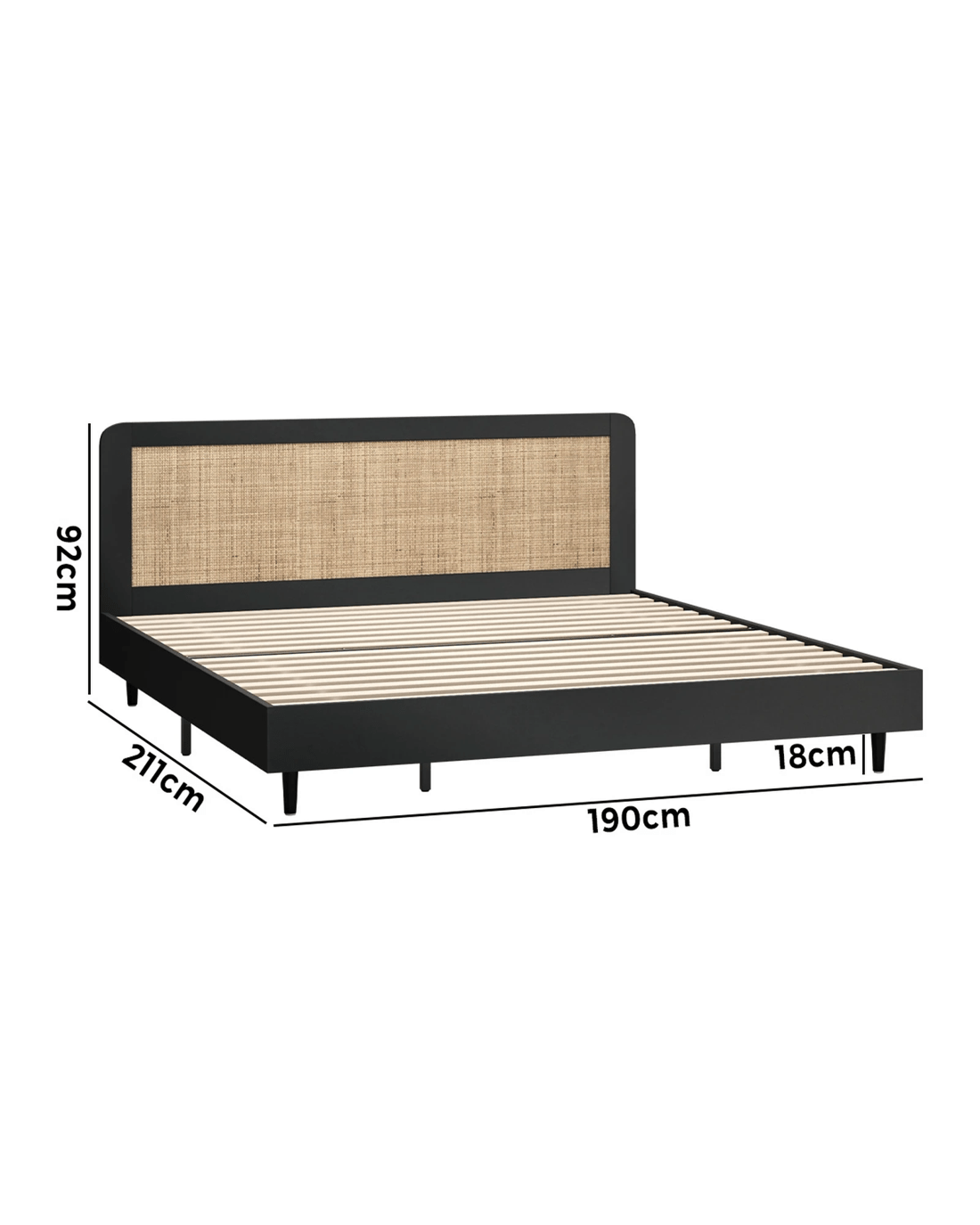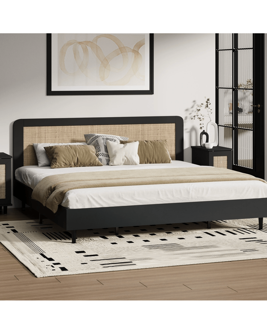 Sold by Kamprad's Oikos 1943Oikiture King Bed Wooden Bed Frame With Rattan Headboard - Black