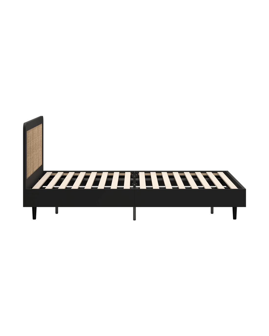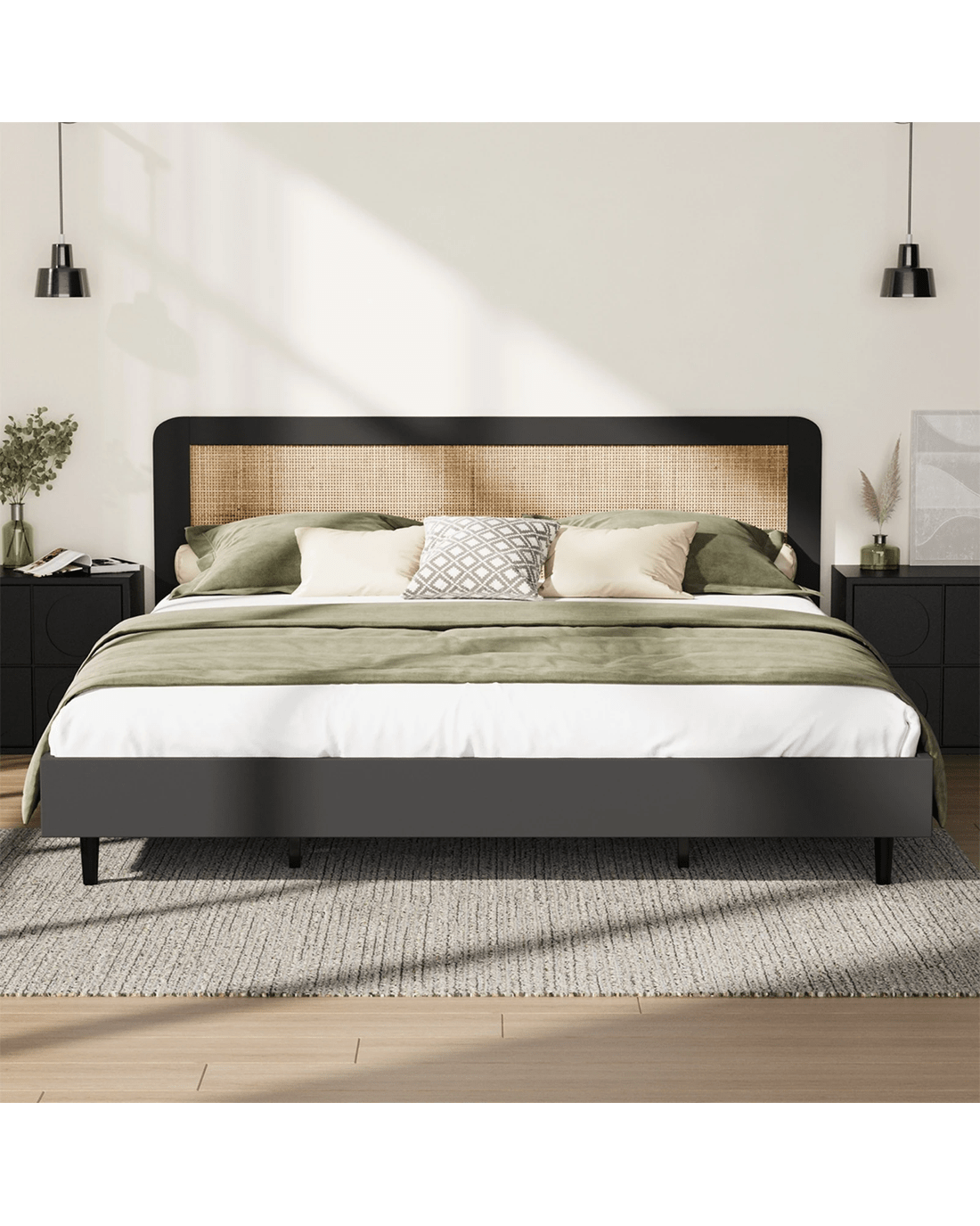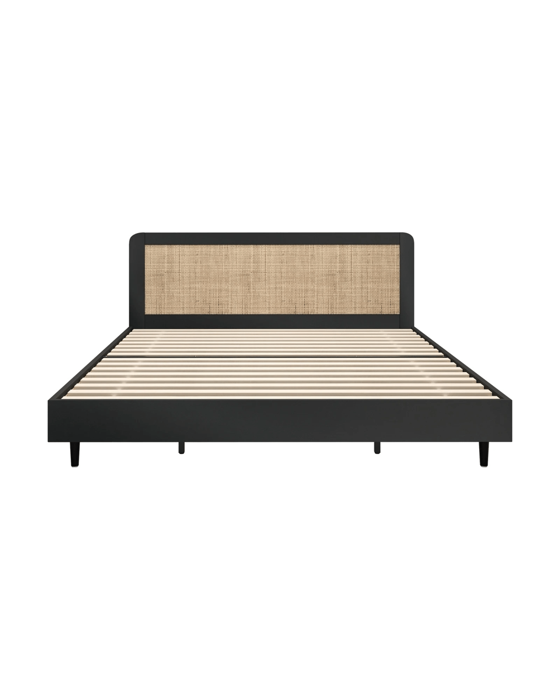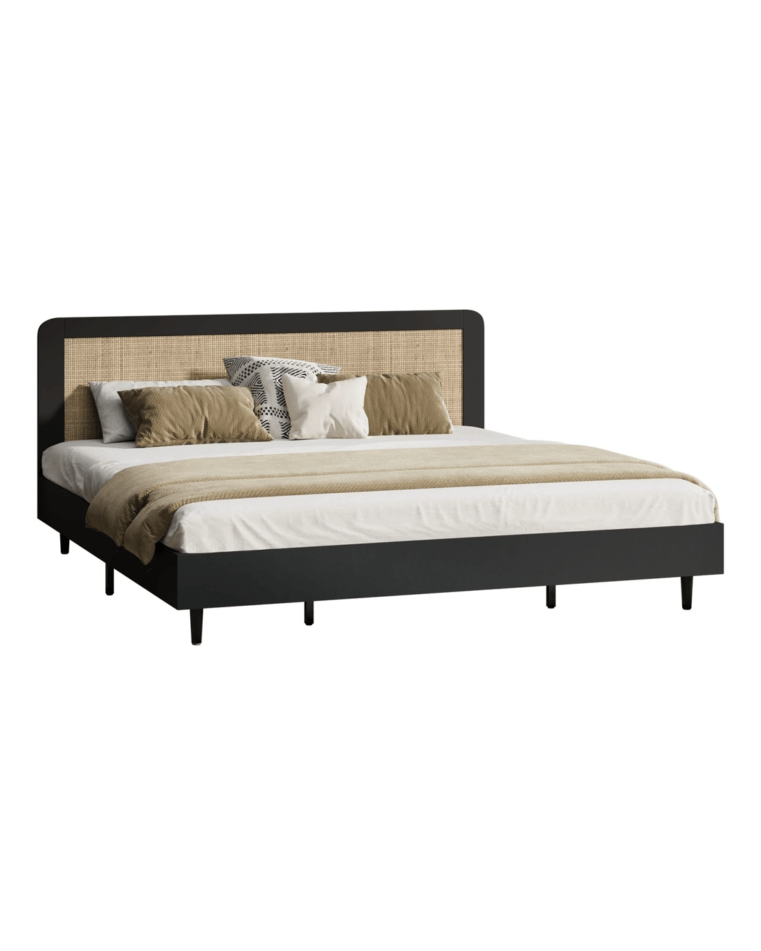Sold by Kamprad's Oikos 1943Oikiture King Bed Wooden Bed Frame With Rattan Headboard - Black