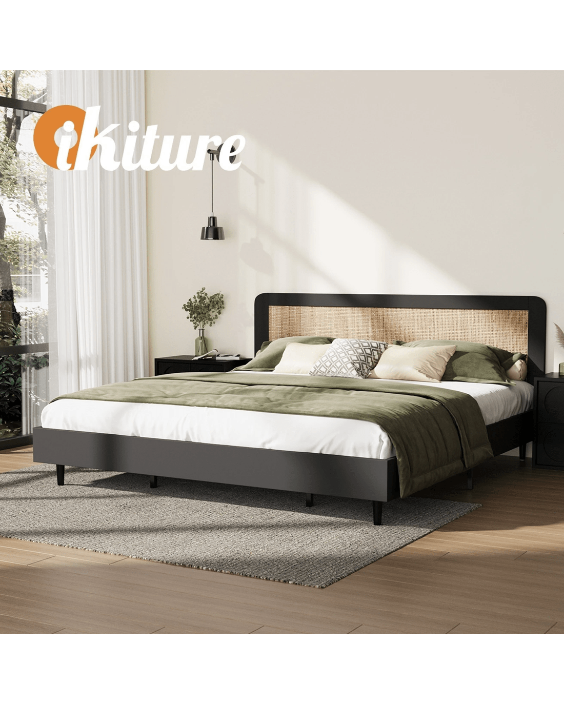 Elevate your bedroom to a realm of elegance and comfort with our Oikiture stunning new bed frame featuring rattan headboard. Immerse yourself in the natural beauty and intricate craftsmanship that this piece brings to your sleeping space, turning your dreams into reality every night.