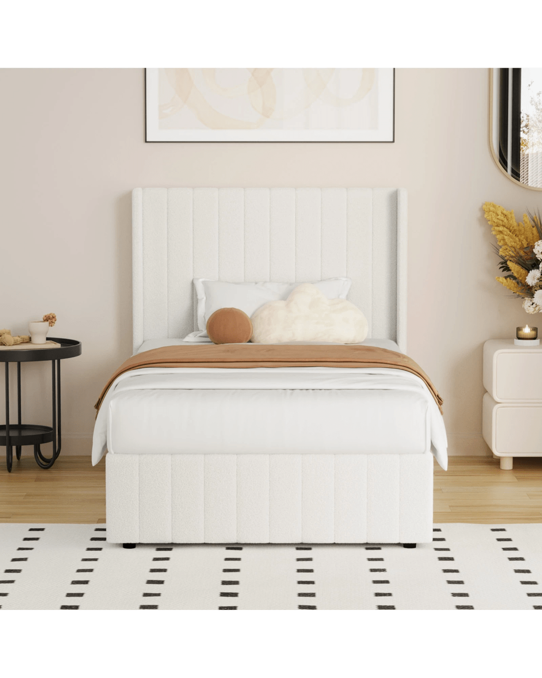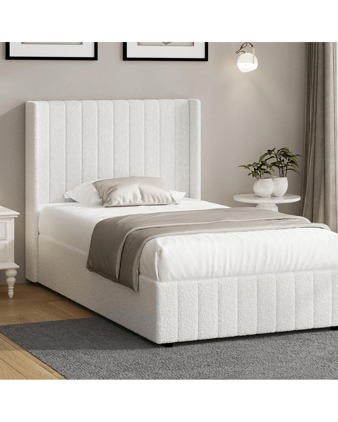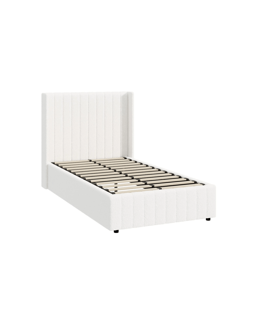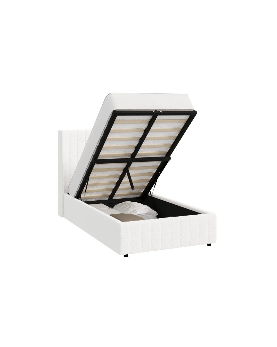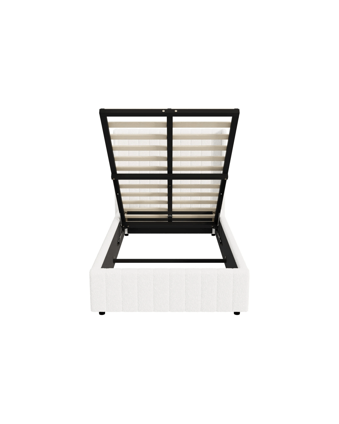 Sold by Kamprad's Oikos 1943Oikiture King Single Bed Frame Gas Lift Base With Storage Boucle Fabric - White