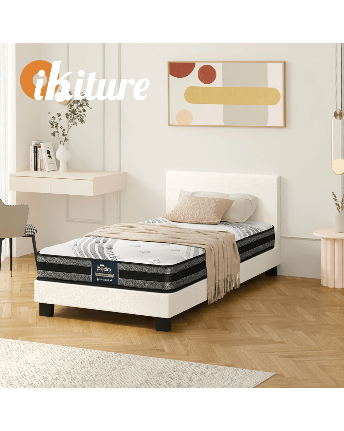 Oikiture King Single Bed Frame With Mattress Set - White