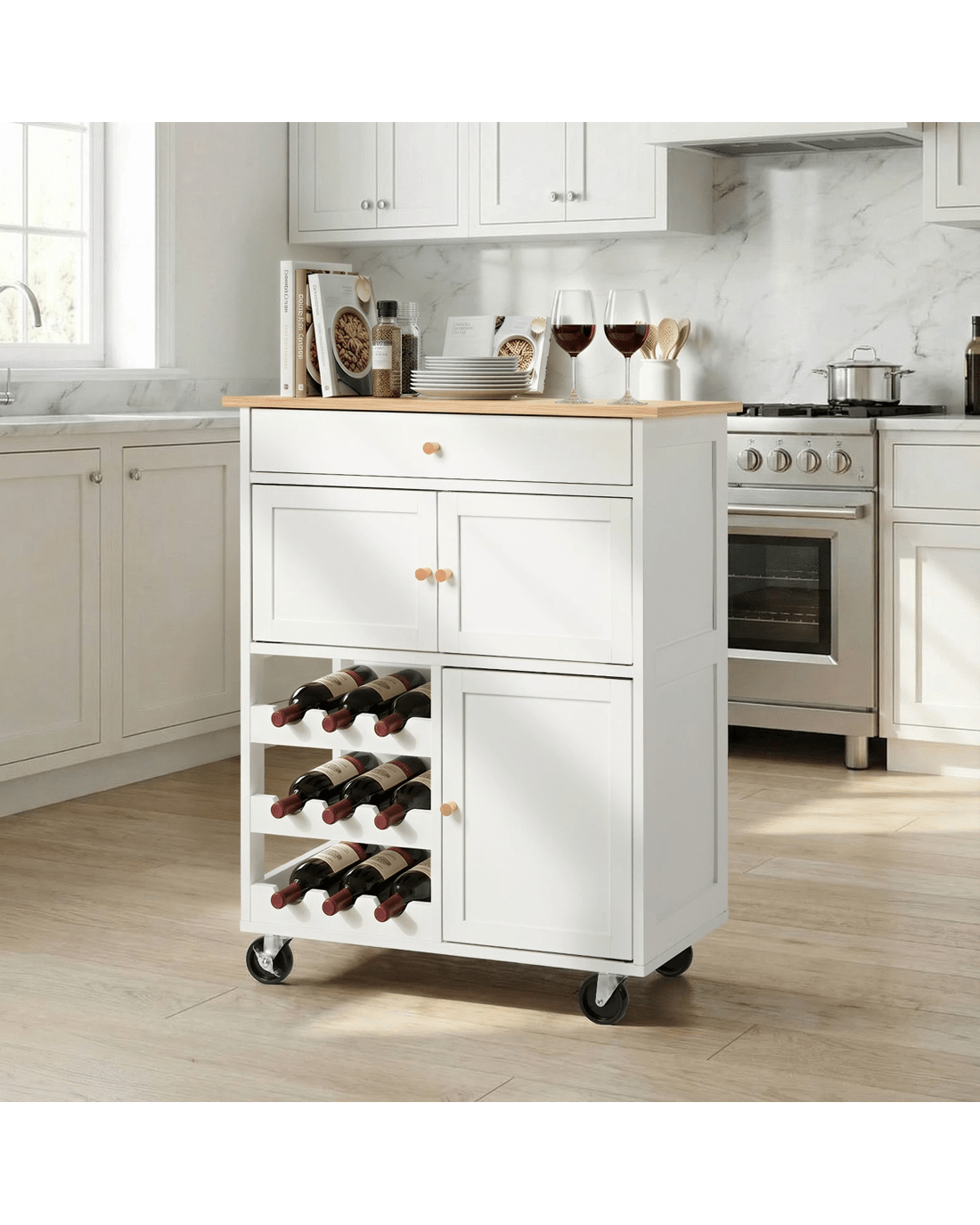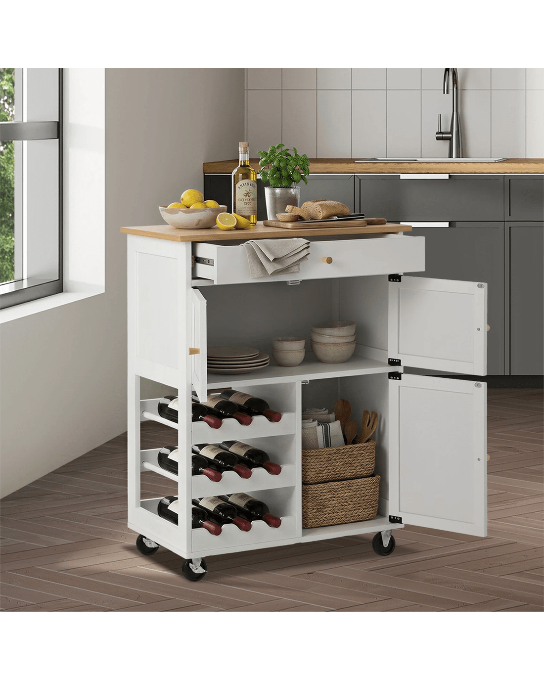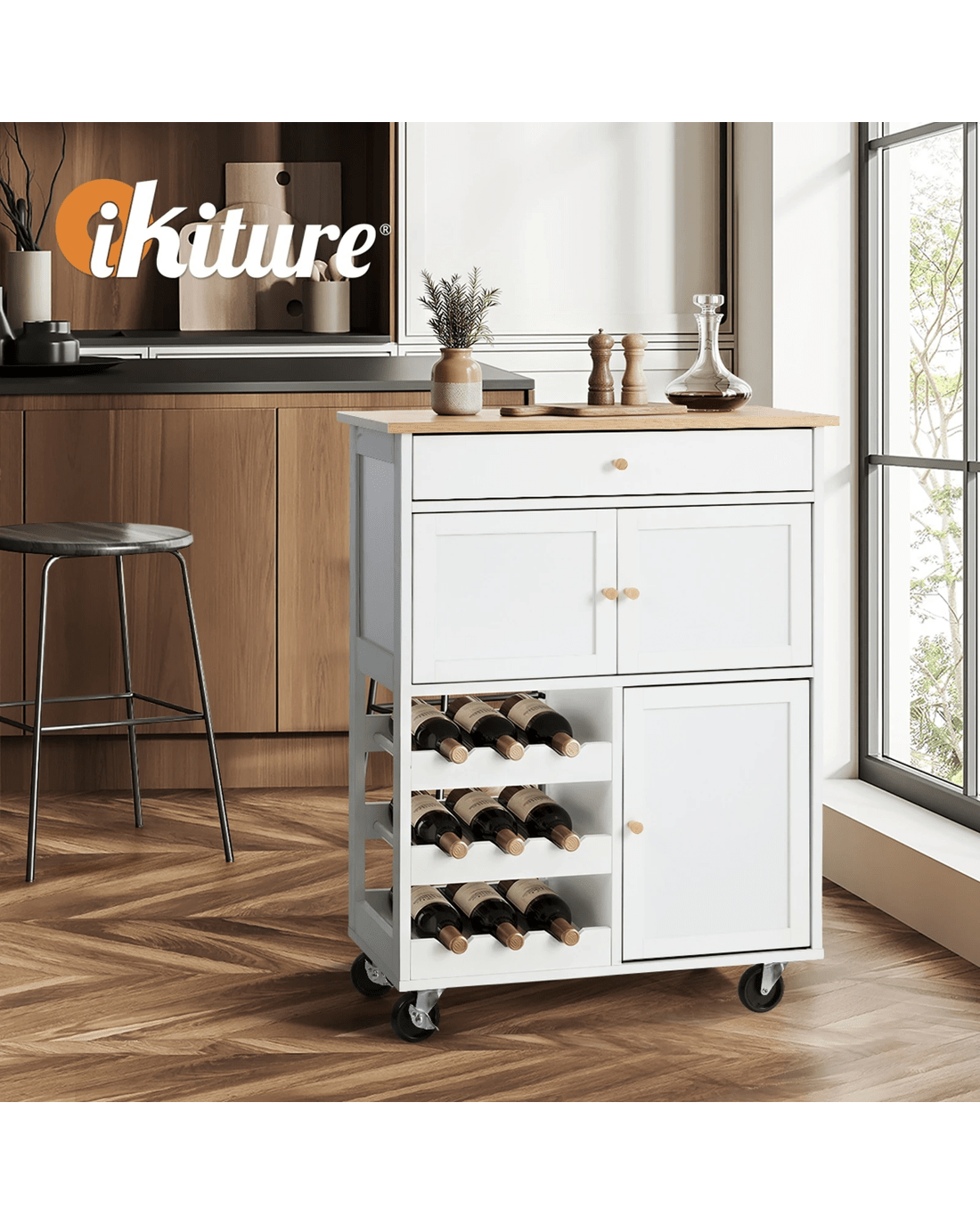 Sold by Kamprad's Oikos 1943Oikiture Kitchen Island Trolley With Wine Rack - White