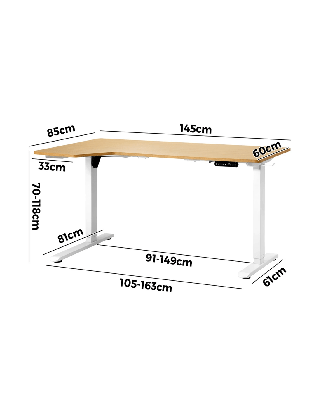 Sold by Kamprad's Oikos 1943Oikiture L-shape Electric Standing Desk Single Motor 145cm Desktop - Multi