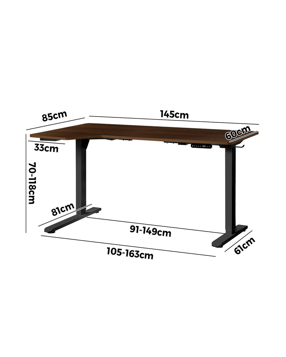 Sold by Kamprad's Oikos 1943Oikiture L-shape Electric Standing Desk Single Motor 145cm Desktop - Multi
