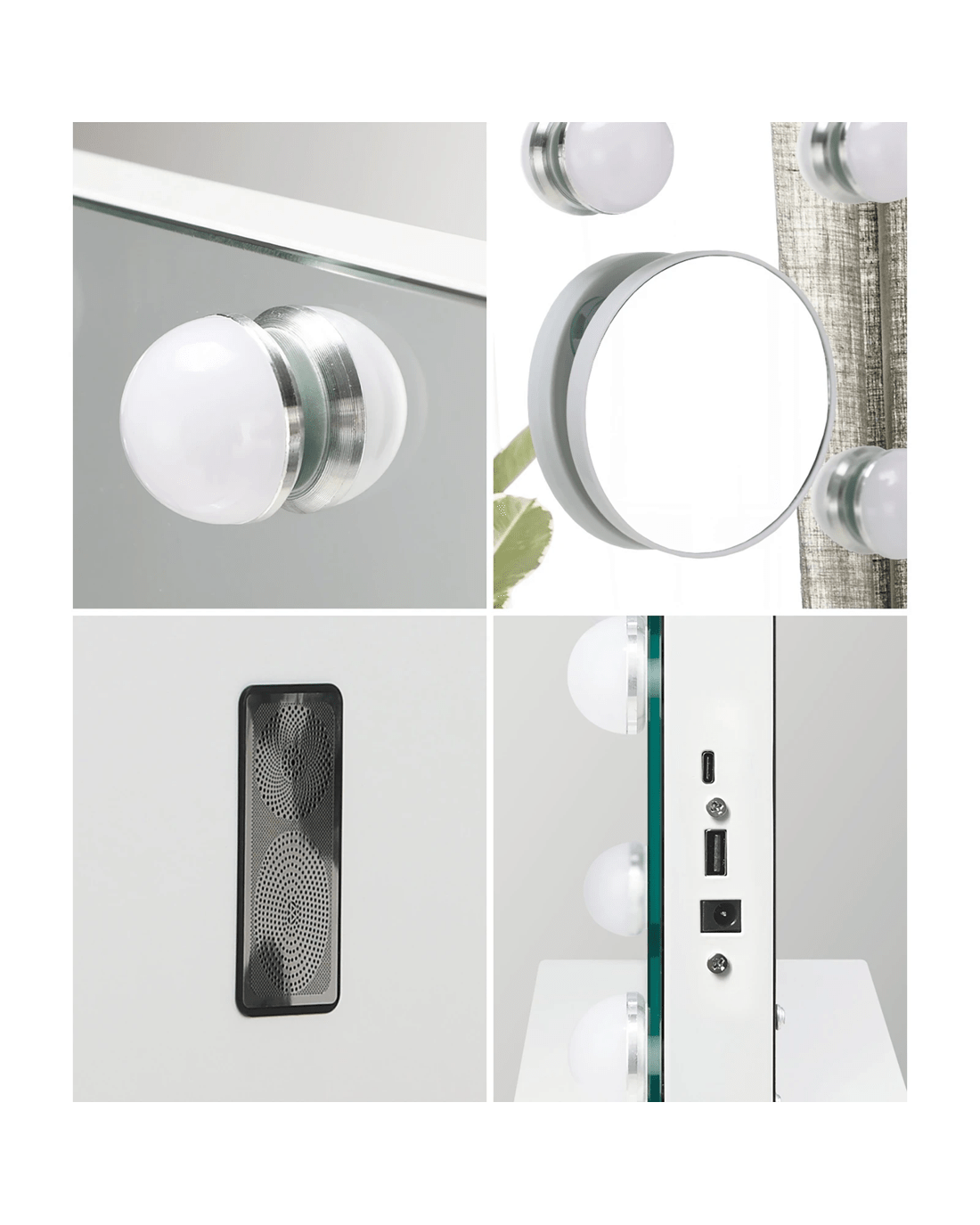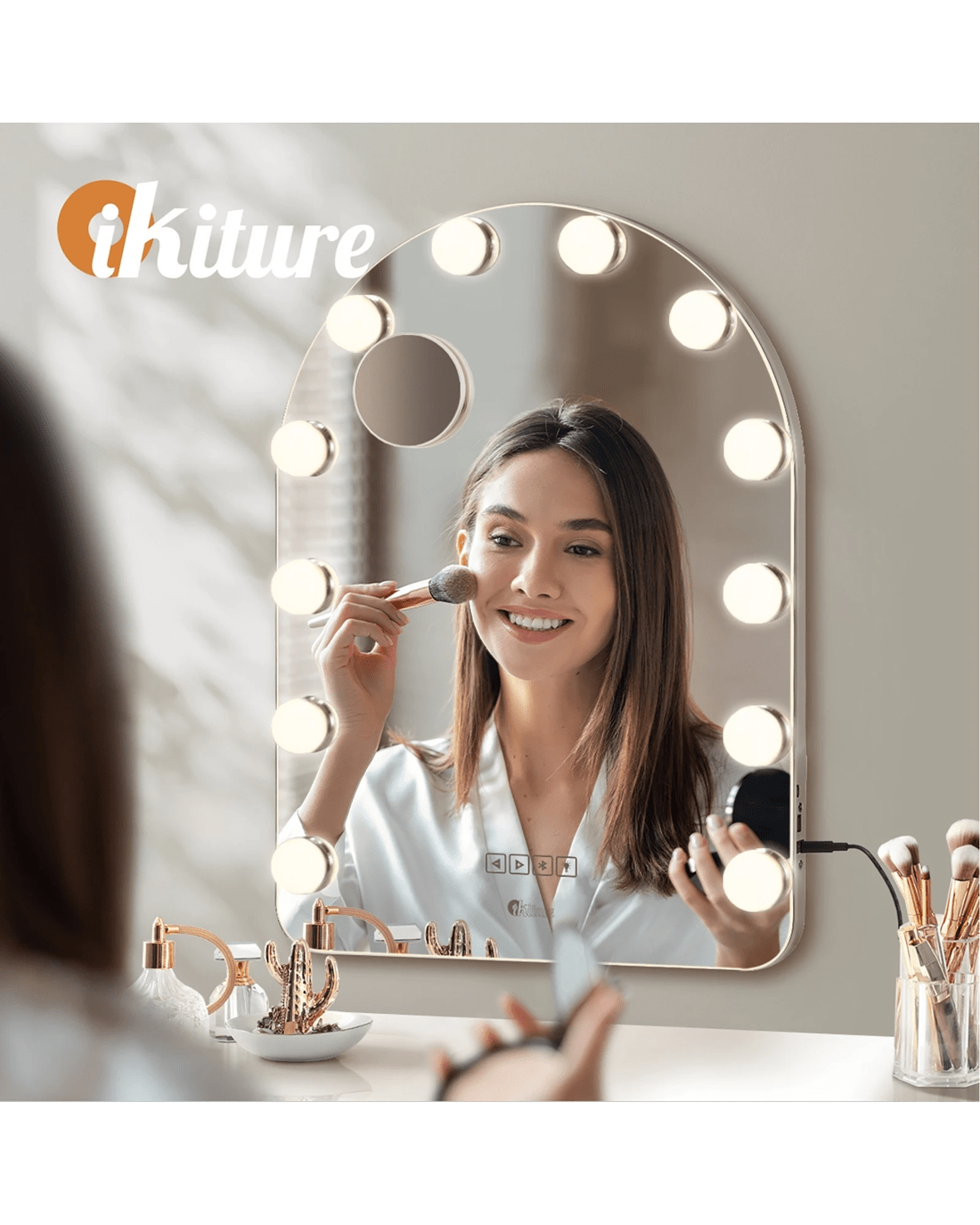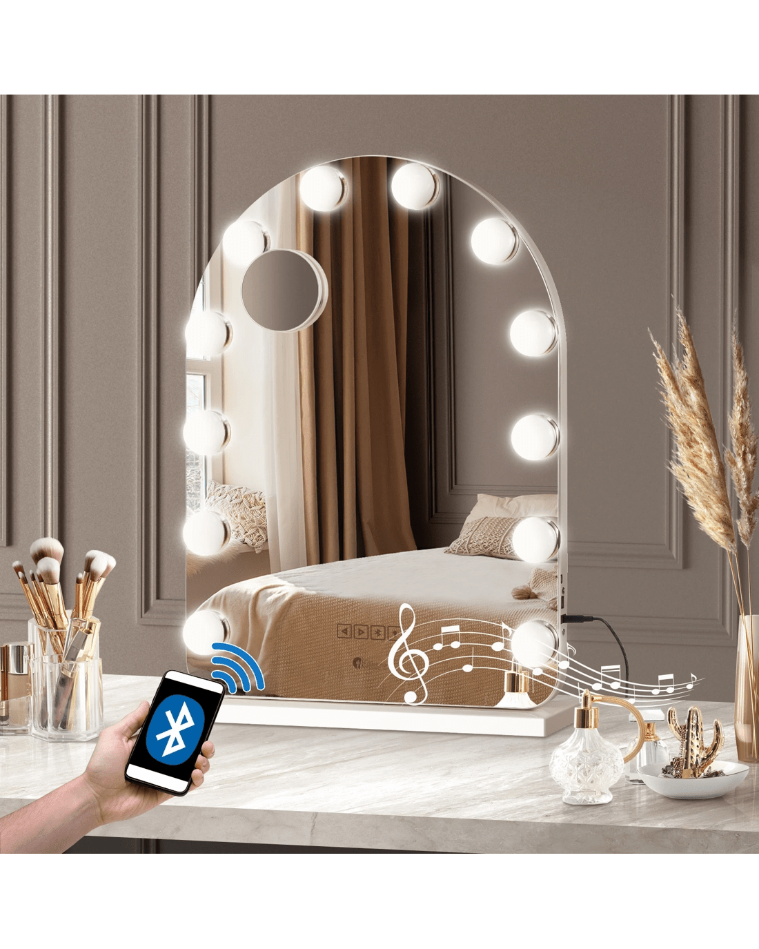 Oikiture Led Arched Makeup Mirror Bluetooth Hollywood 61x43cm Vanity Wall Mirrors - White