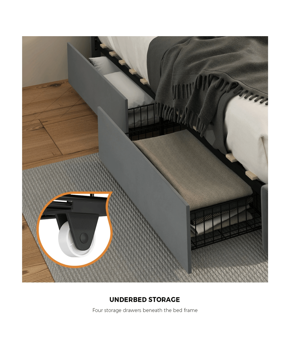 Underbed storage with four storage drawers