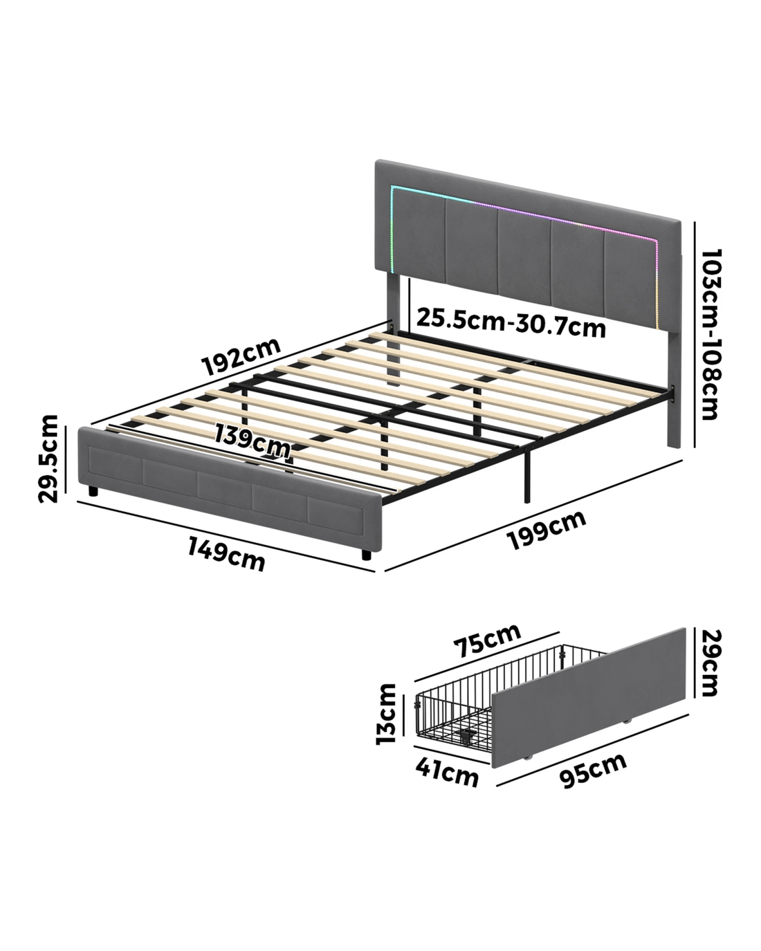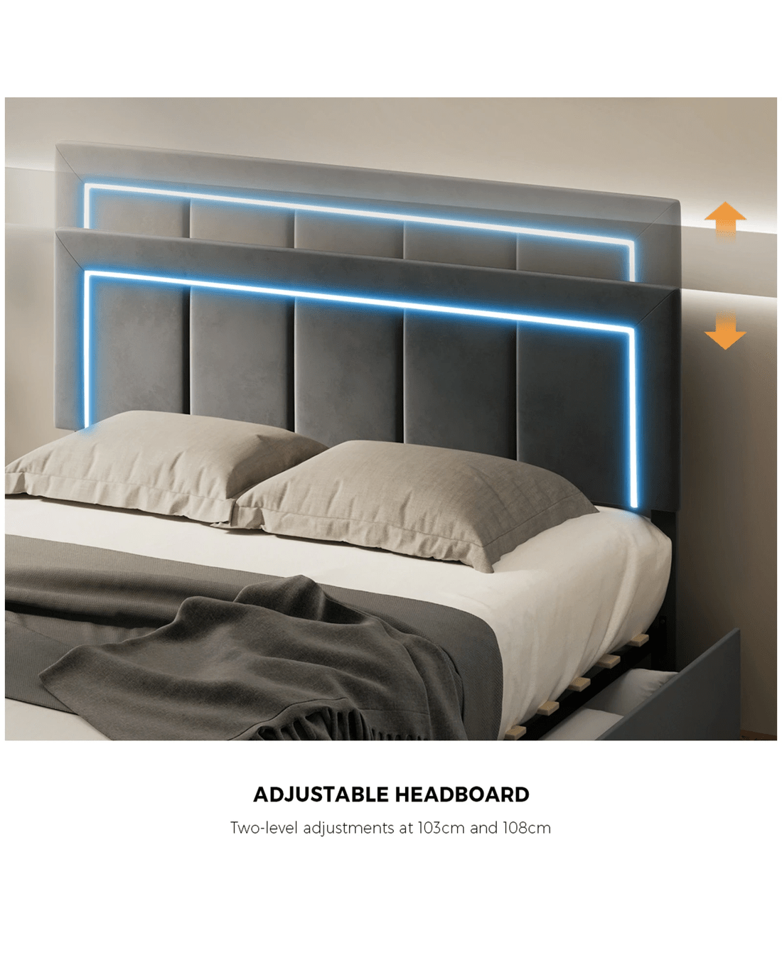 Headboard adjustable heights: 103cm and 108 cm
