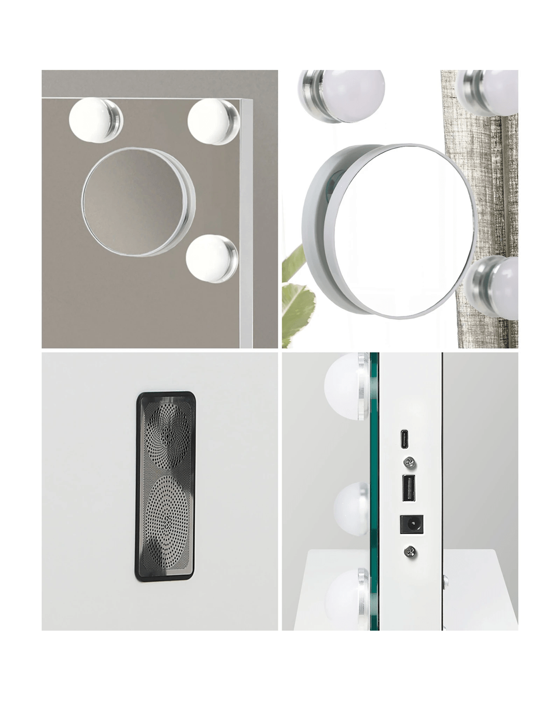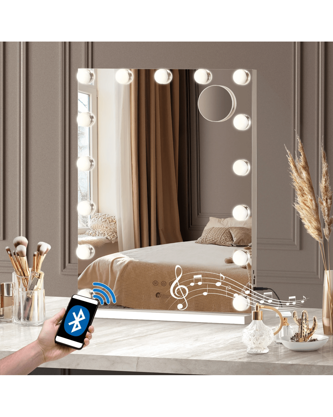 Sold by Kamprad's Oikos 1943Oikiture Led Makeup Mirror Bluetooth Hollywood 61x43cm Vanity Wall Mirrors - White