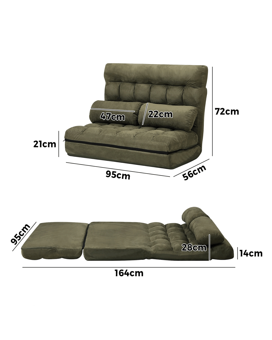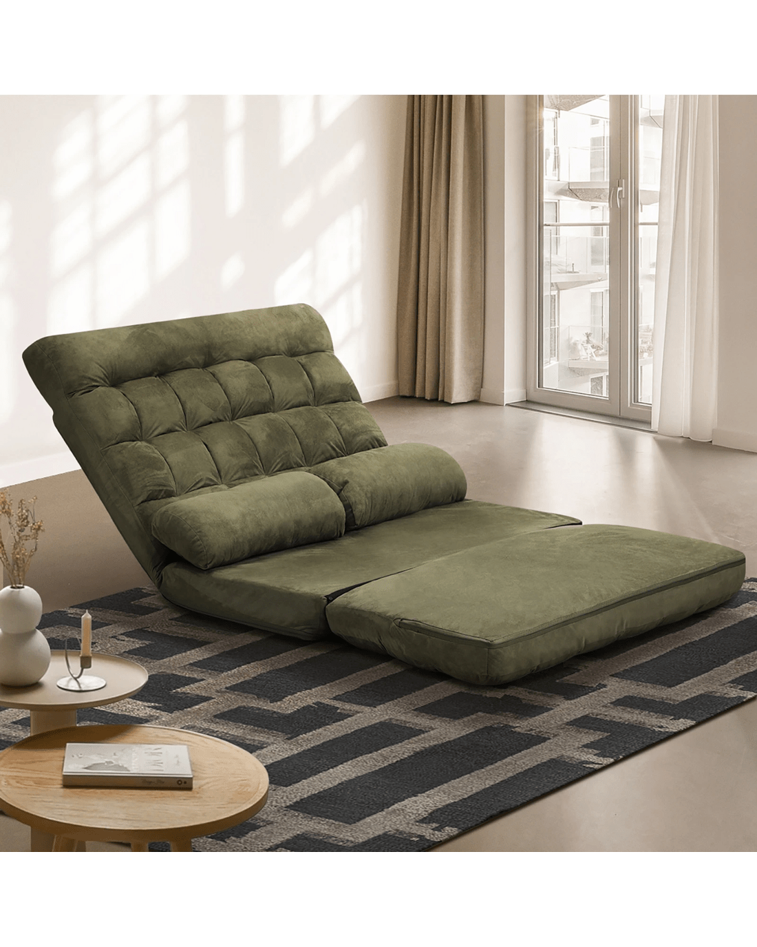 Sold by Kamprad's Oikos 1943Oikiture Lounge Sofa Bed Floor Recliner 2 Seater Chaise Chair Folding - Green