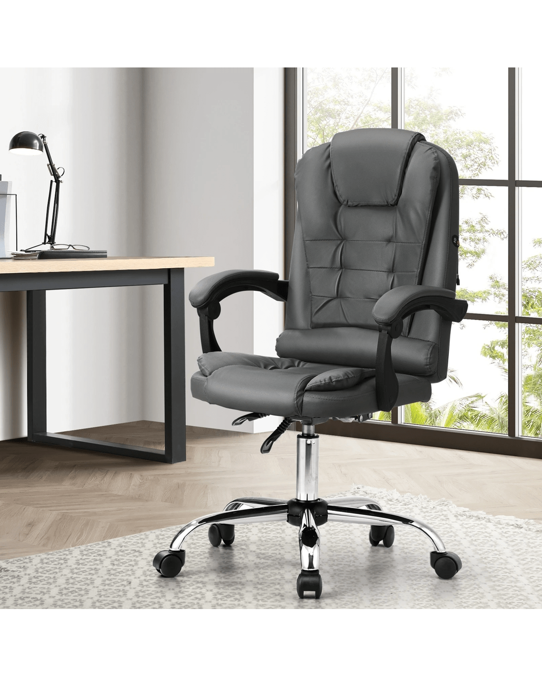 Sold by Kamprad's Oikos 1943Oikiture Massage Office Chair Executive Gaming Racing Chairs PU Leather - Grey