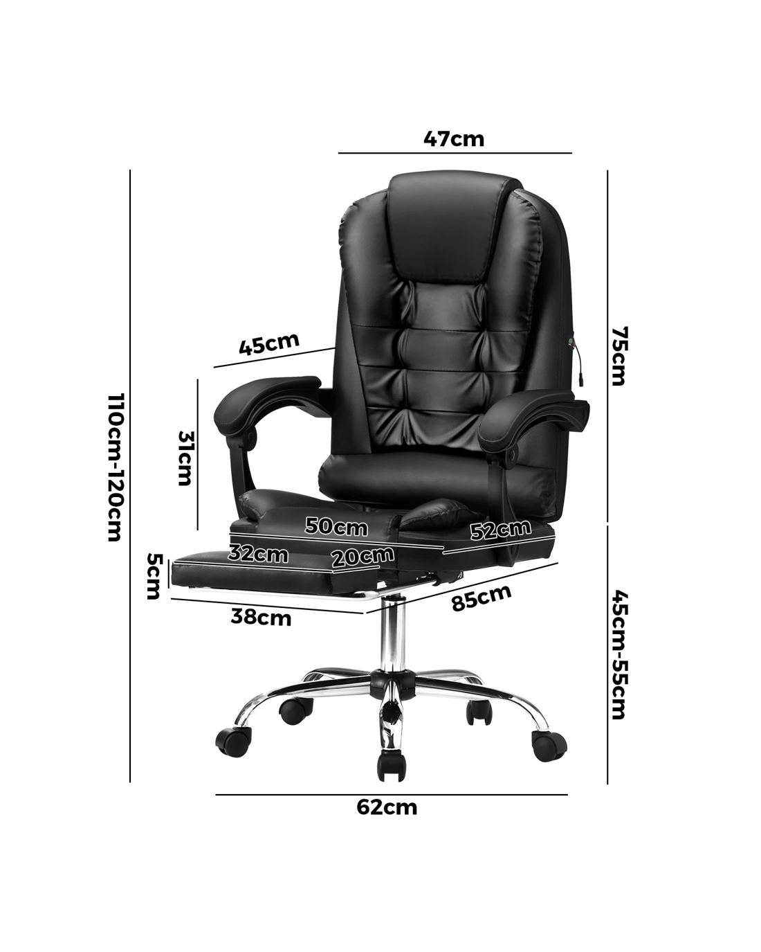 Seat height adjustment: 45-55cm