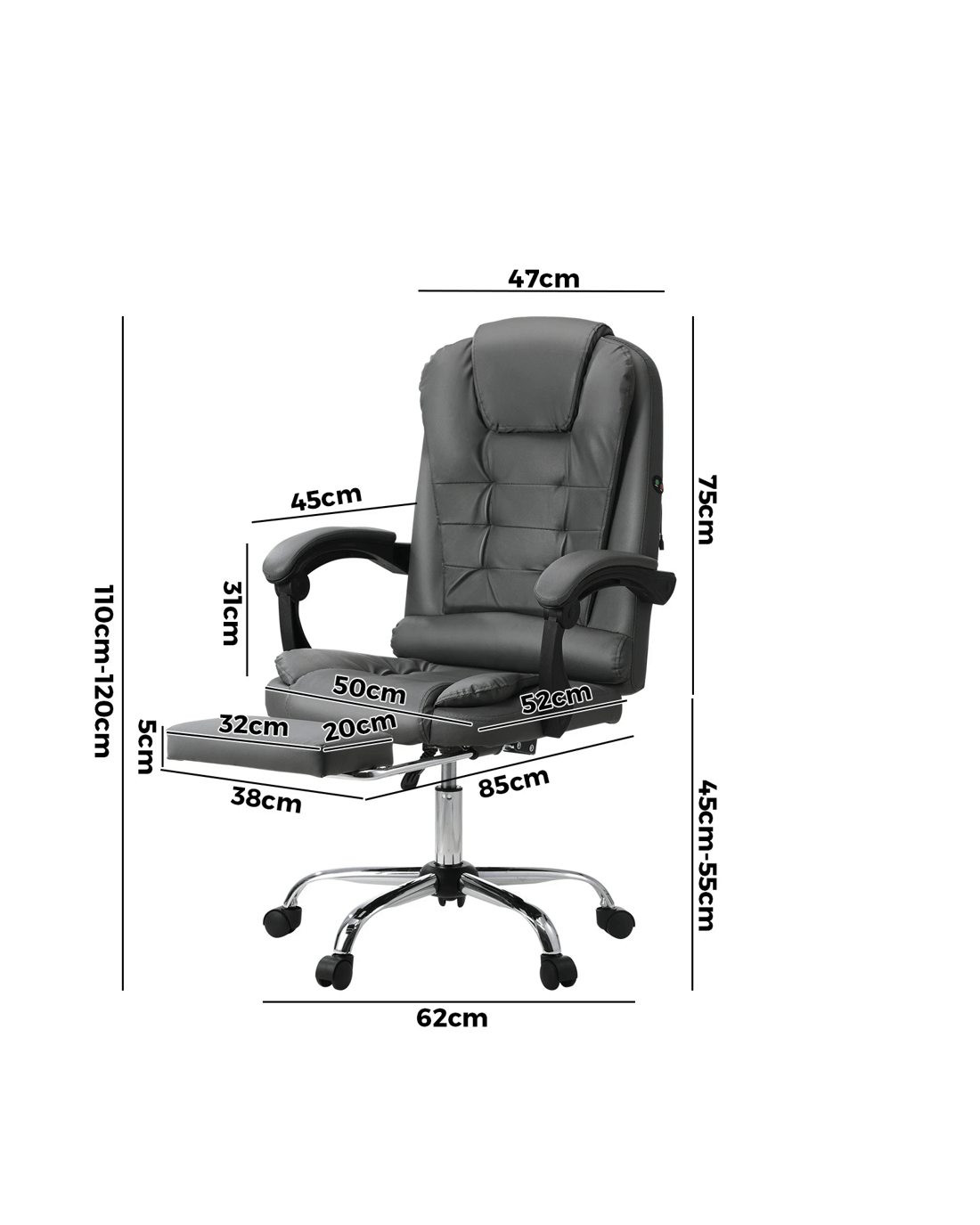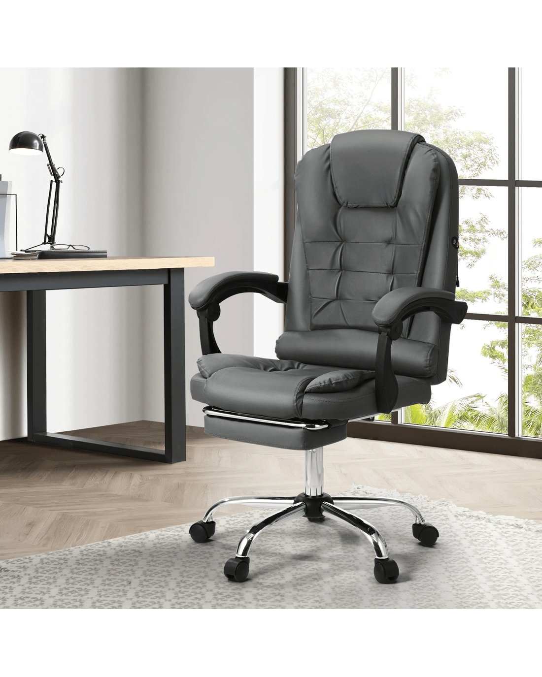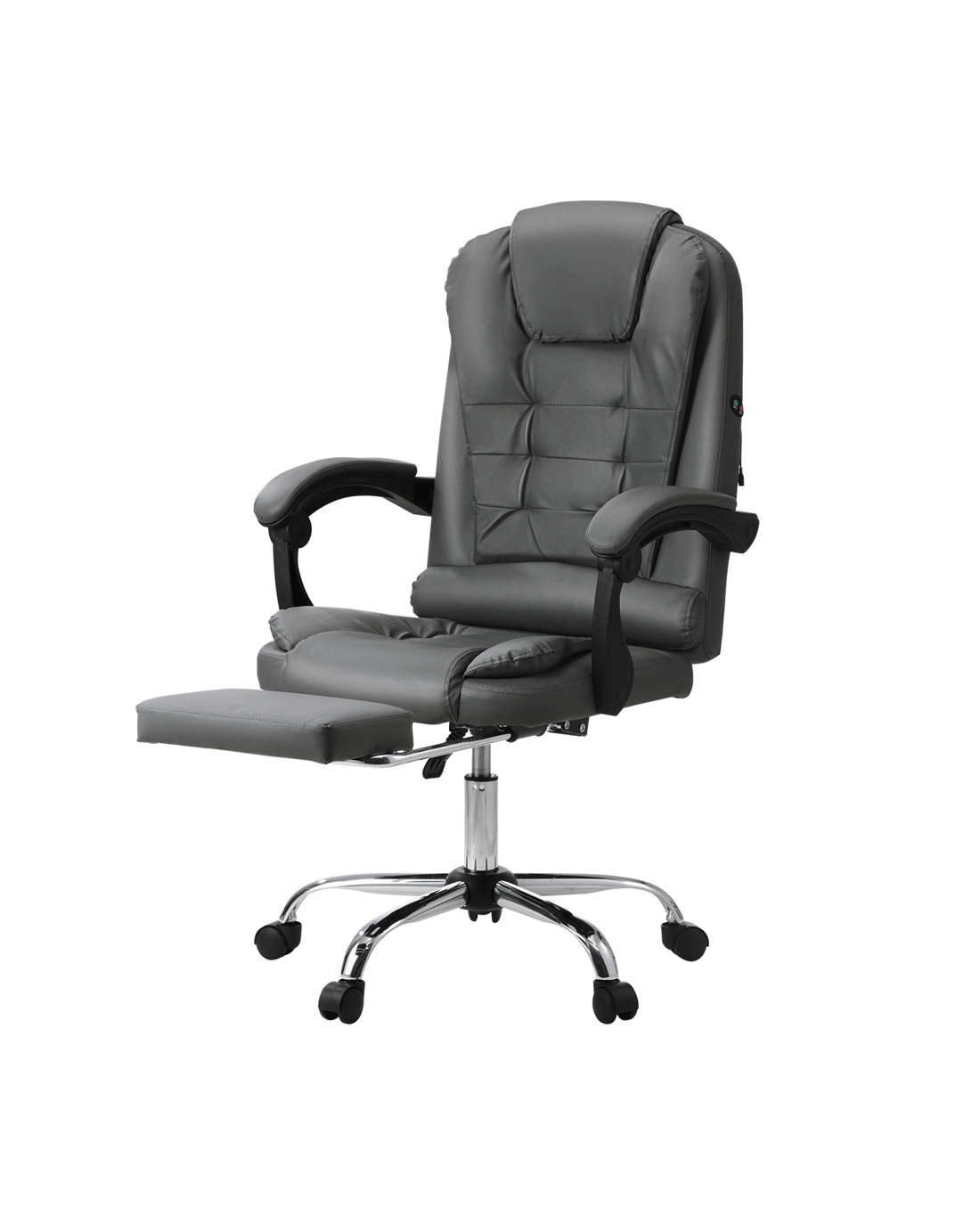 Sold by Kamprad's Oikos 1943Oikiture Massage Office Chair Executive Gaming Racing Chairs PU with Footrest - Grey