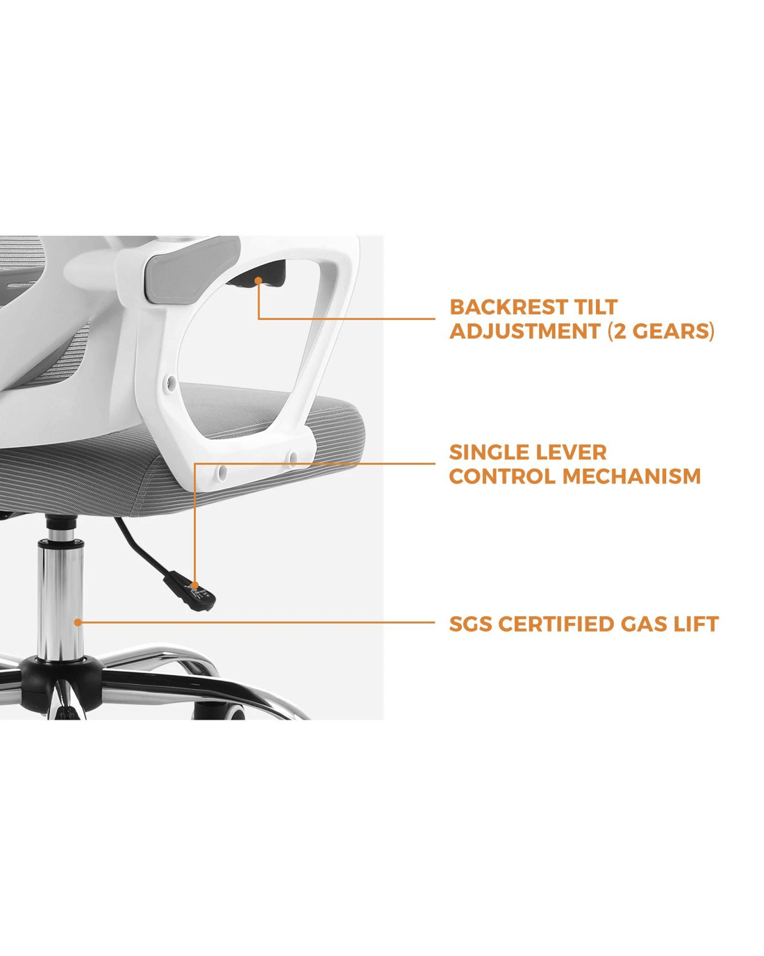 Incorporating a customizable lumbar support system, your comfort is a top priority. Fine-tune the lumbar region to fit your unique posture and promoting healthy spine alignment. You can fine tune the support by height or depth, to reduce strain on your lower back. When it is time for a break, our office chair has you covered with a recline feature that allows you to lean back and relax. Adjust the recline angle to your preference and take a moment to unwind or even enjoy a power nap.