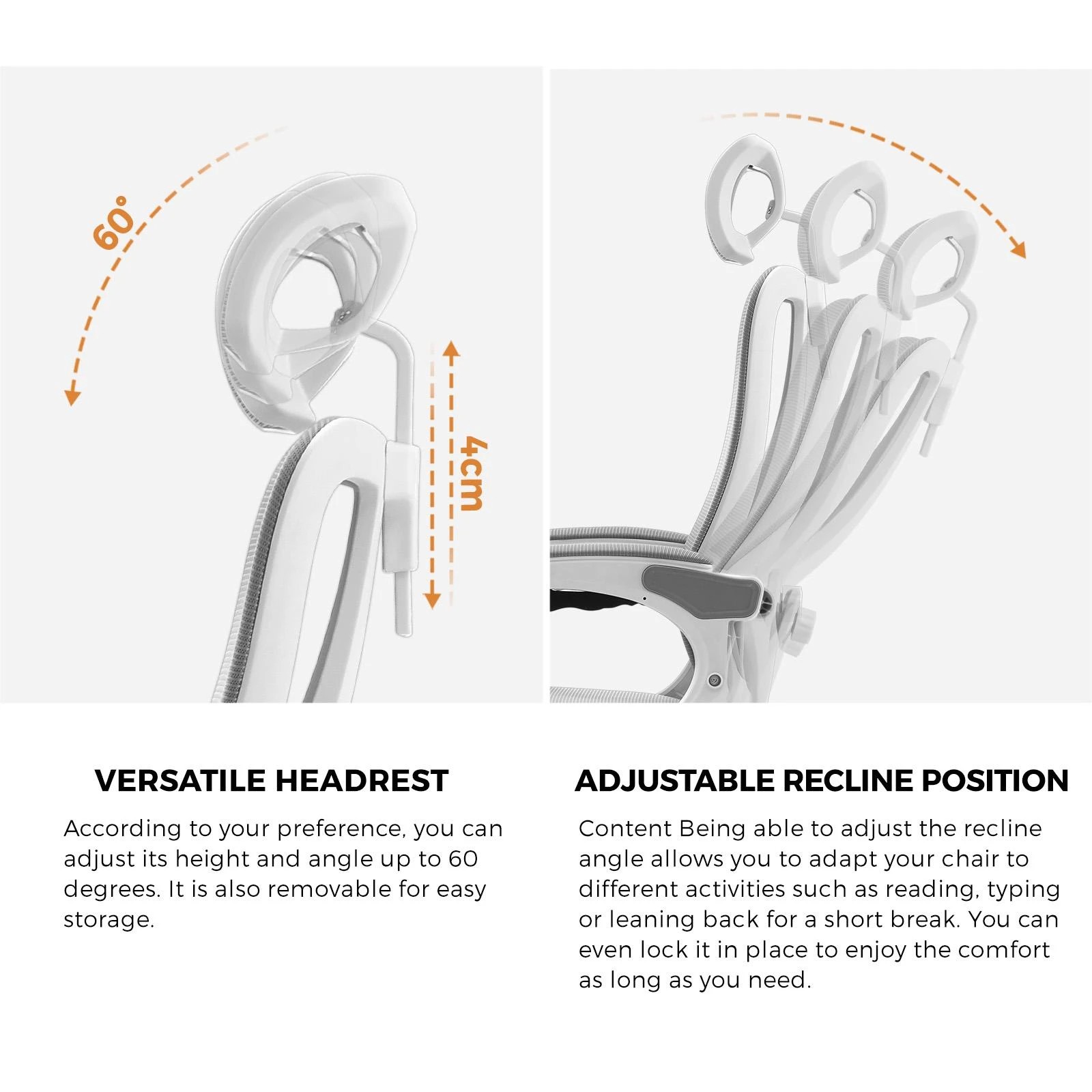 Oikiture Mesh Office Chair Adjustable Lumbar Support Reclining - White