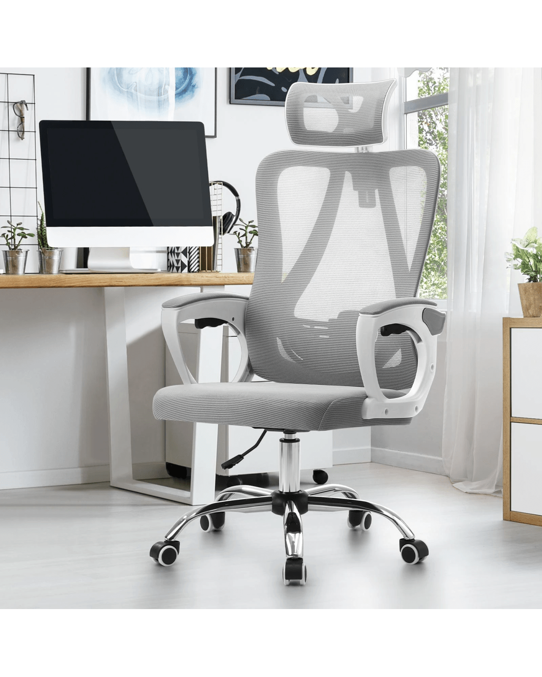 The chair features premium mesh fabric, not only adding a sleek, modern look to your workspace but also keeping you cool and comfortable by promoting air circulation, even during intense work sessions. Built to last, this office chair boasts a strong and stable frame designed to support users of all sizes, accommodating both petite and tall individuals without compromising on durability.