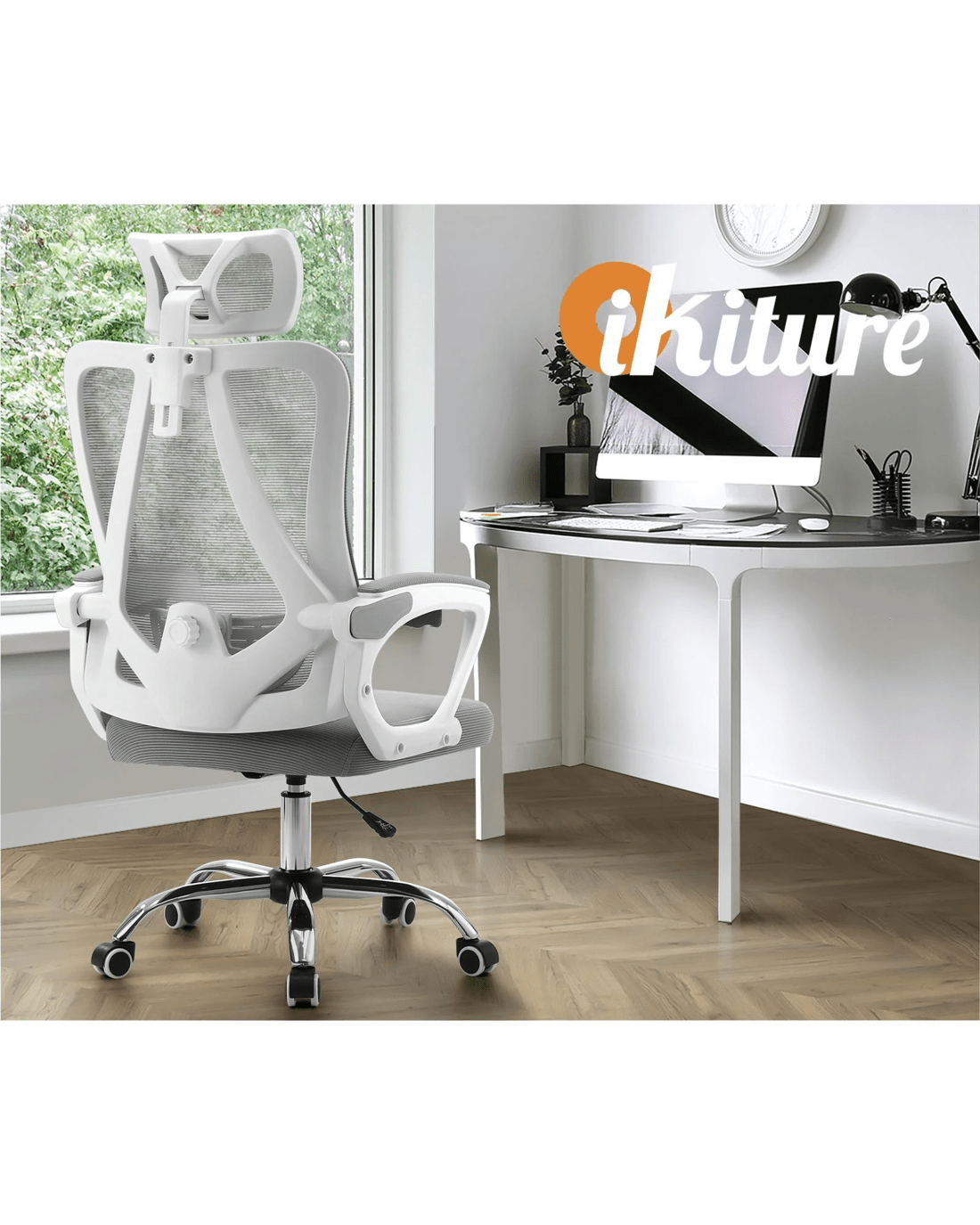 Sold by Kamprad's Oikos 1943Oikiture Mesh Office Chair Adjustable Lumbar Support Reclining - White