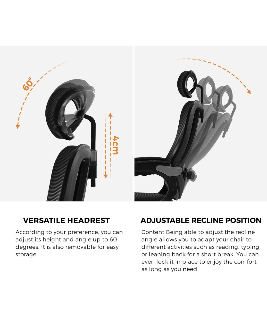 Sitting right is so important to ensure comfort and reduce fatigue with long hours on the seat. With the Oikiture Mesh Office Chair, we have the perfect seat to ensure that you will never have to wish you had a better office chair. Take a closer look at this inspired office chair and you will appreciate the finer aspects of an office chair designed to work for you. The finishing is meticulous with good workmanship and attention to detail whilst the generous foam-padded seat upholstered in quality fabric and padded armrests provide localised creature comforts you will appreciate time and again. Enjoy your time working at the desk for enhanced productivity and never worry about sore posterior, strained backs and the like again. And to match the sitting pleasure, the highly breathable mesh backrest lets fresh air through as its high and wide dimensions envelope your body in the best way possible. Better still, the office chair can be customised with various tilt and height adjustments ranging from the headrest to the backrest and a retractable built-in footrest to make the office chair is your perfect seatdom with every sitting. Swing it freely in every direction. Move it to any location with ease. Steady and stable in its stance. The Oikiture Mesh Office Chair is totally at your versatile service.