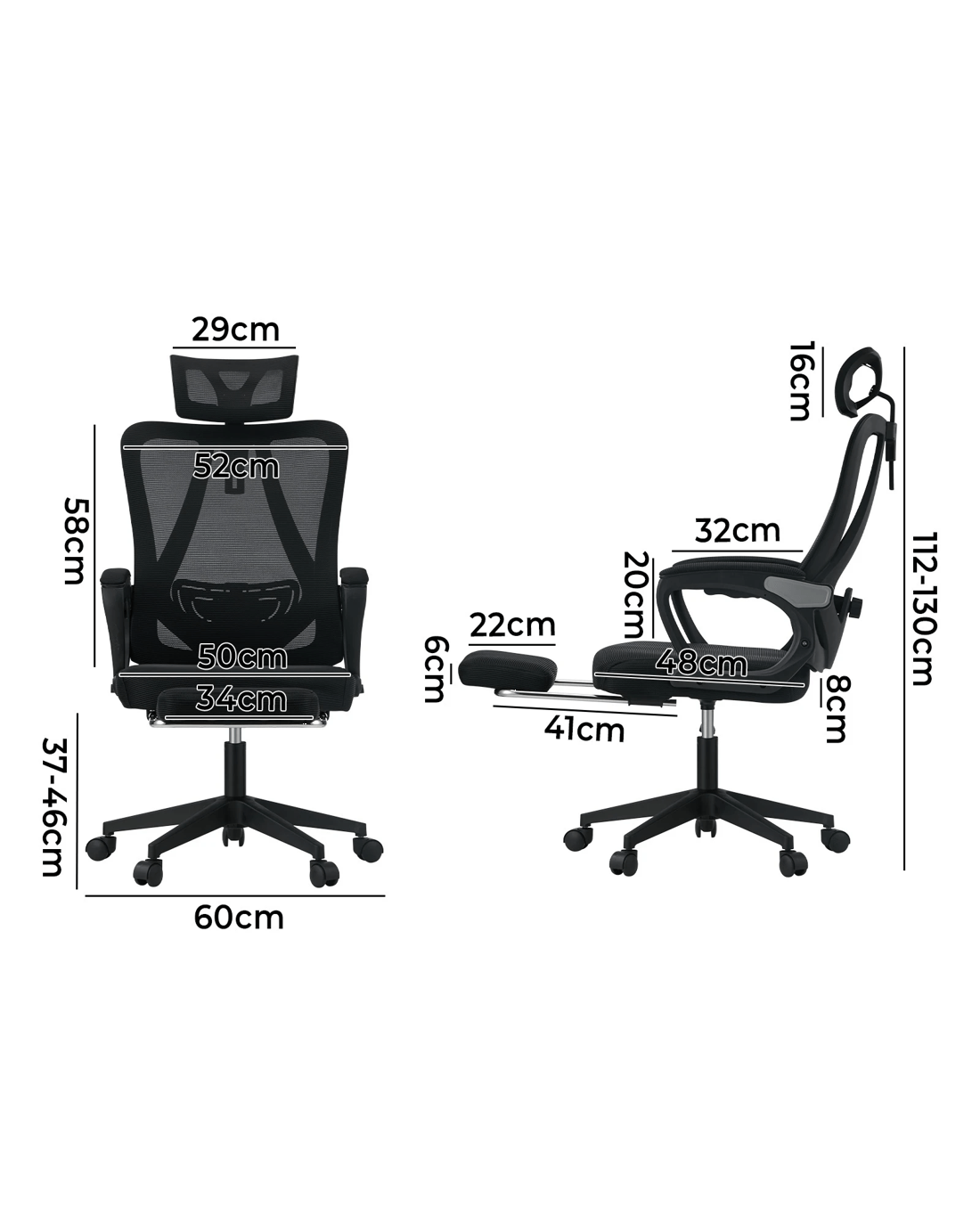 Seat height adjustment: 37cm-46cm