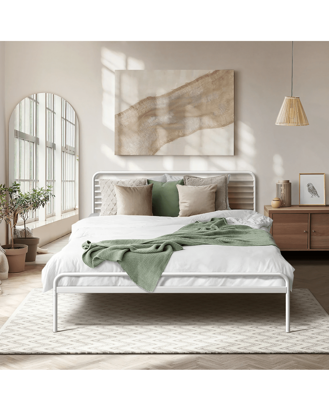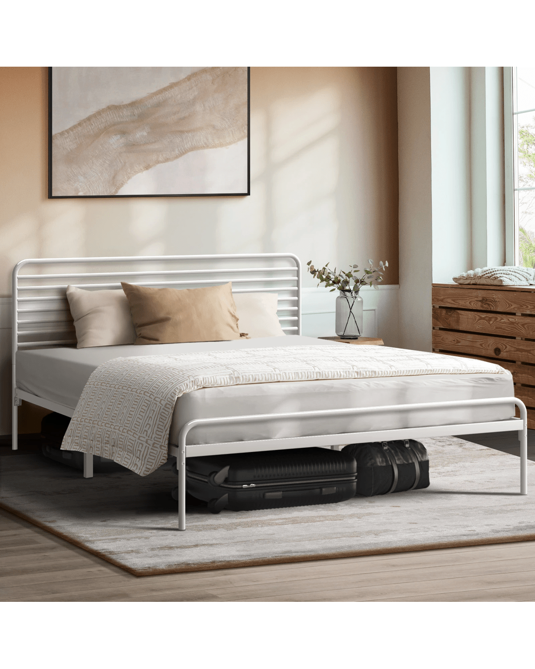 Sold by Kamprad's Oikos 1943Oikiture Metal Bed Frame Double Size Bed Base Beds Platform - White