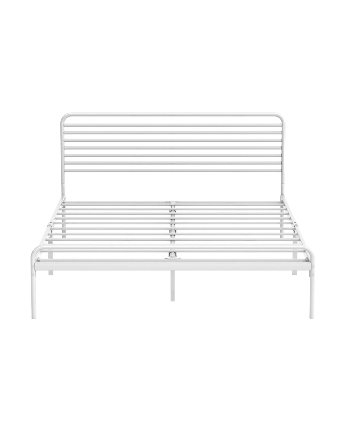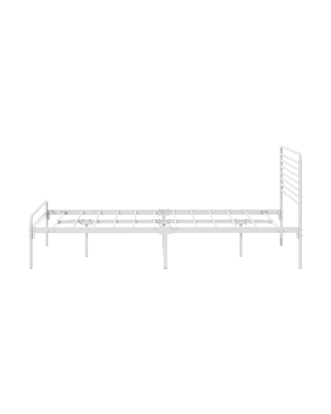 The distinctive railing design on the bed head adds a touch of uniqueness to your sleeping space, providing sturdy support while enhancing the visual appeal with its thoughtful craftsmanship. Crafted from high-quality metal, including metal bars for reinforced mattress support, this bed frame ensures durability and longevity. The robust construction not only supports your mattress and foundation but also withstands the test of time, offering a reliable and sturdy foundation for a restful night's sleep.