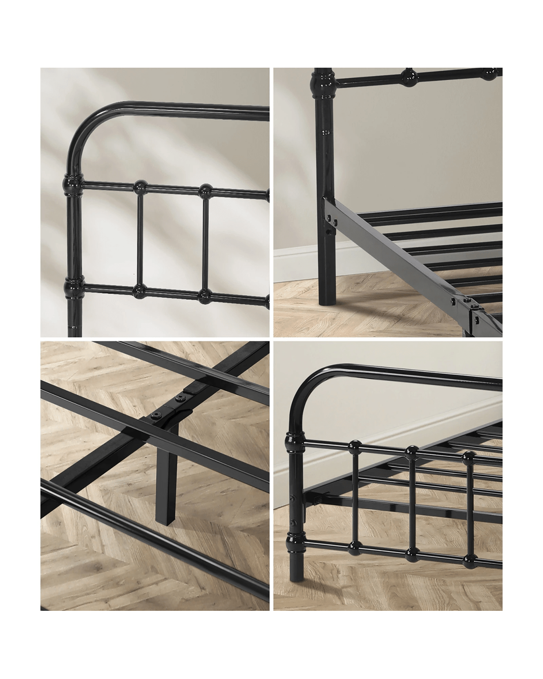Crafted with meticulous attention to detail, our vintage-style bed frame features intricate scrollwork and decorative accents that exude timeless beauty. Its finish adds an authentic vintage appeal, transporting you to a bygone era while maintaining the sturdiness and reliability of modern craftsmanship.