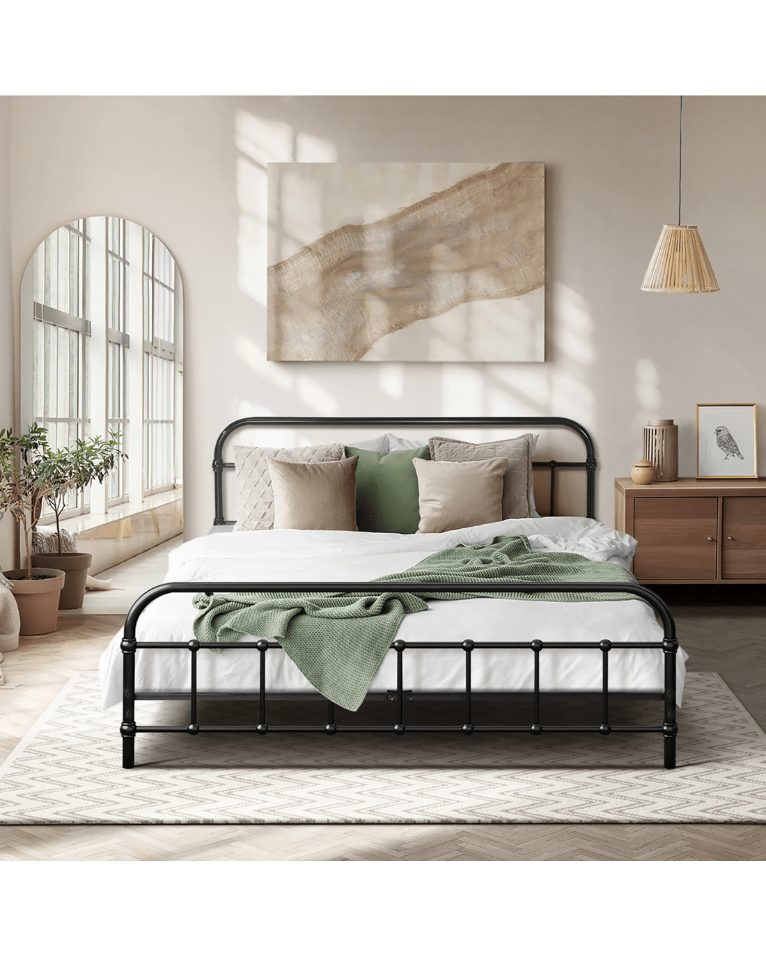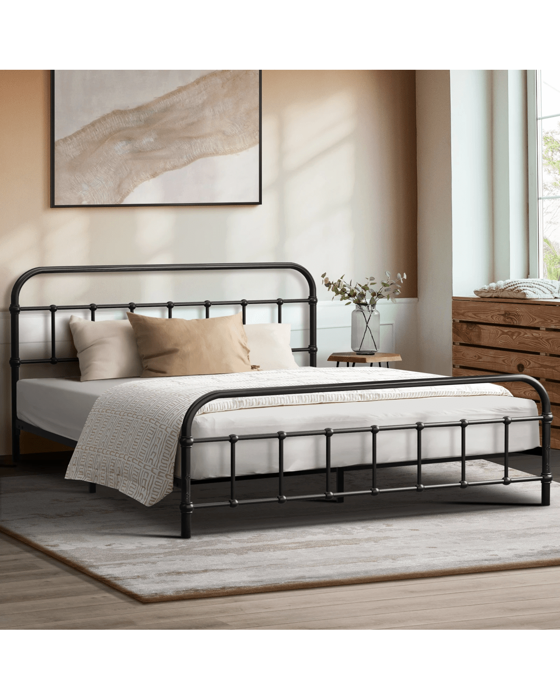 Step back in time with our exquisite Oikiture vintage-style metal bed frame! Inspired by the elegance and charm of yesteryears, this bed frame is the perfect addition to infuse a touch of nostalgia and character into your bedroom.