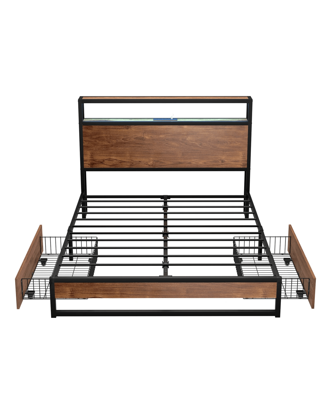 Sold by Kamprad's Oikos 1943Oikiture Metal Bed Frame Double Size With Led Headboard Storage Drawers Usb - Black