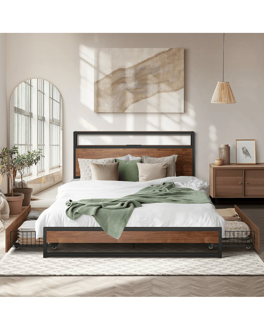 If there's a term to aptly describe this Oikiture Metal Bed Frame Set, it would be fascinating. Equipped with storage and lighting features, this multi-facet metal bed frame set is ready to brighten up your slumber time in brilliant style.