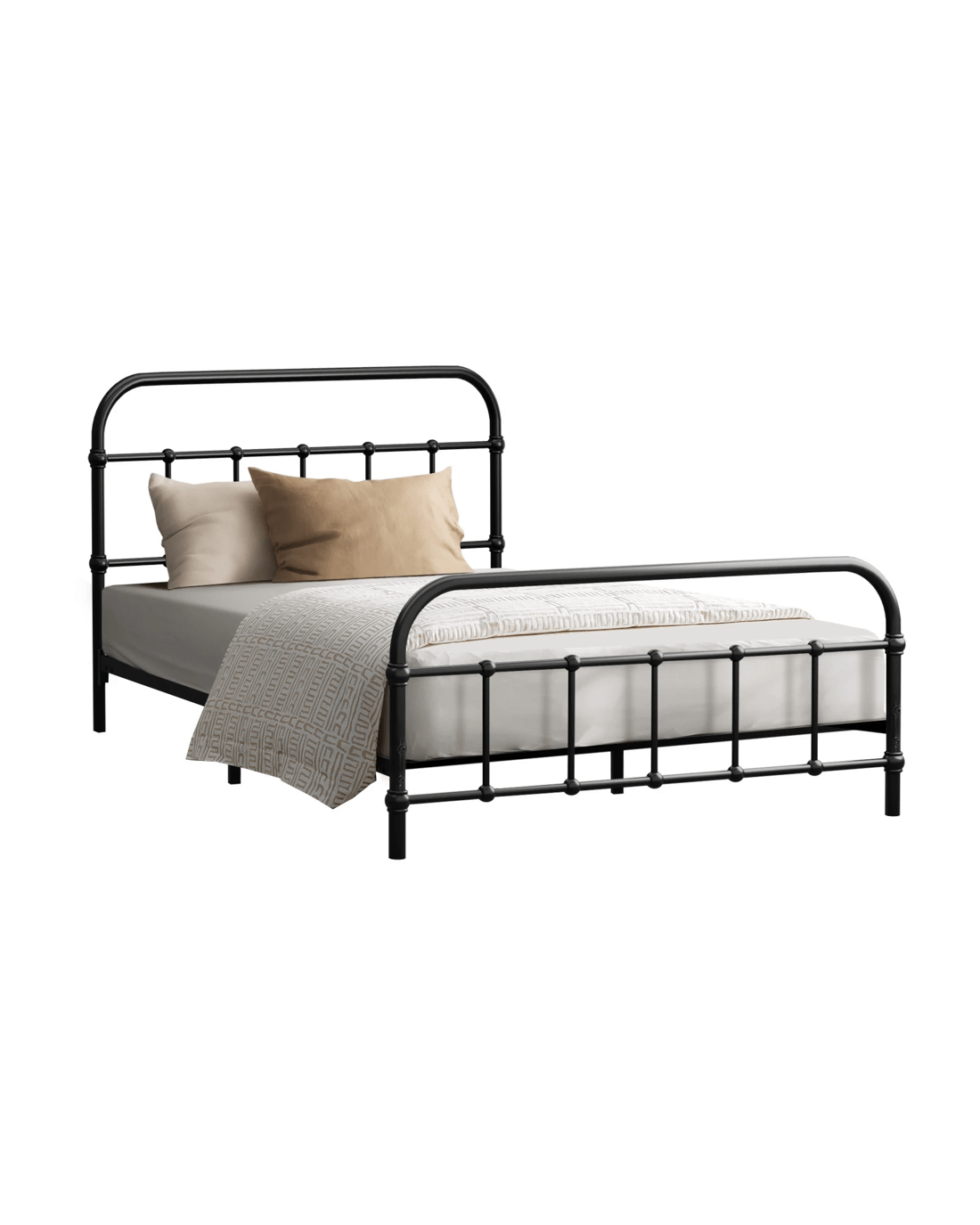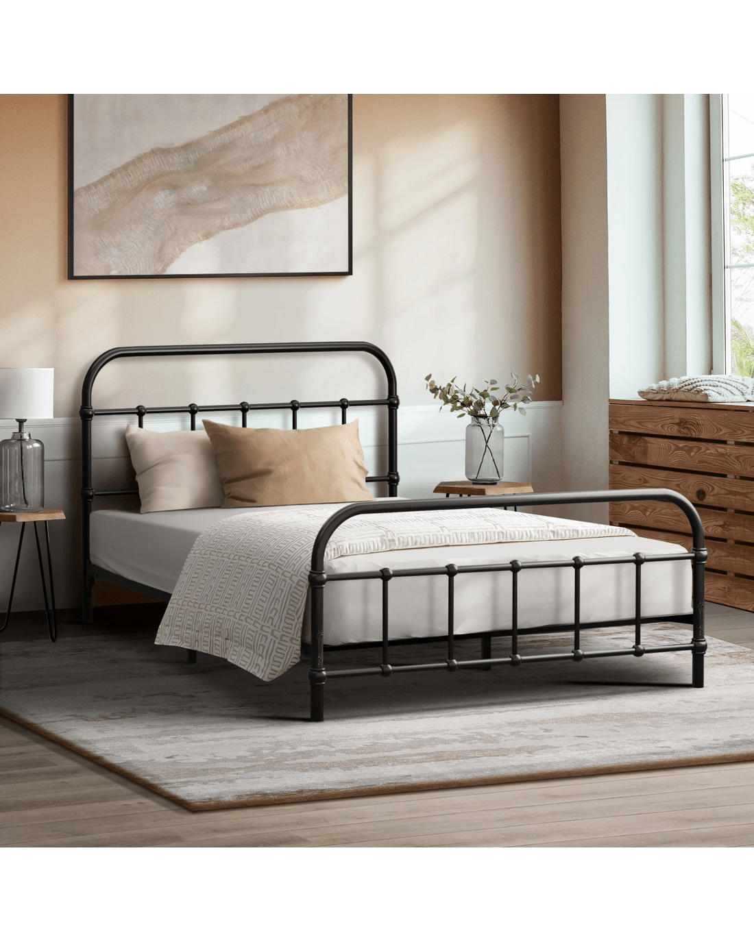 Crafted with meticulous attention to detail, our vintage-style bed frame features intricate scrollwork and decorative accents that exude timeless beauty. Its finish adds an authentic vintage appeal, transporting you to a bygone era while maintaining the sturdiness and reliability of modern craftsmanship.