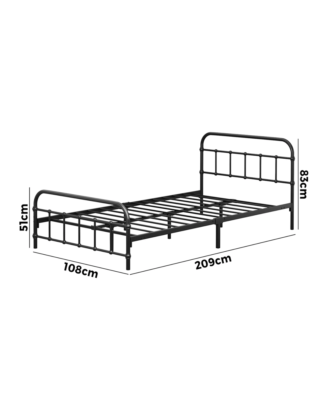 Sold by Kamprad's Oikos 1943Oikiture Metal Bed Frame King Single Size Bed Base Platform - Black
