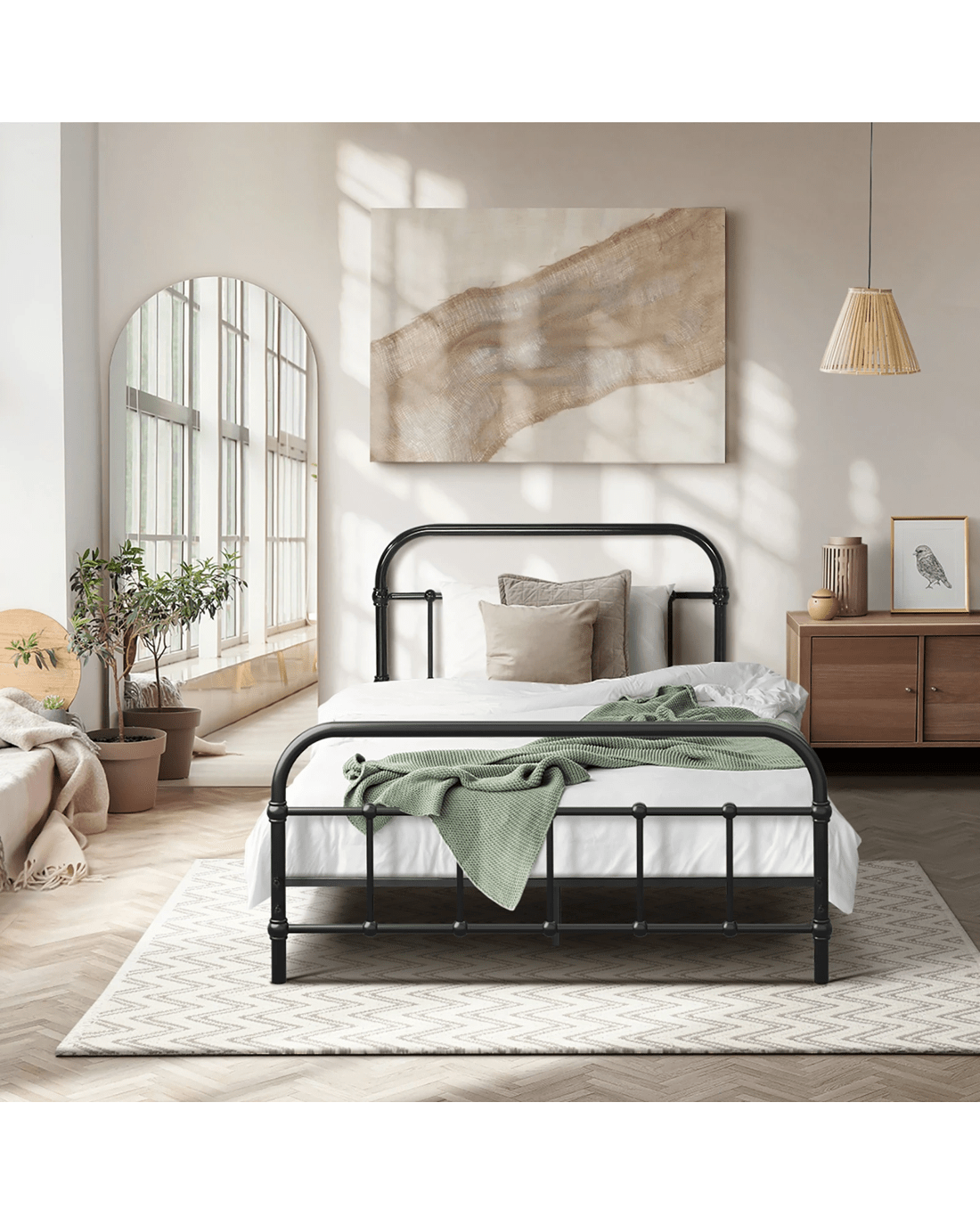 Step back in time with our exquisite Oikiture vintage-style metal bed frame! Inspired by the elegance and charm of yesteryears, this bed frame is the perfect addition to infuse a touch of nostalgia and character into your bedroom.