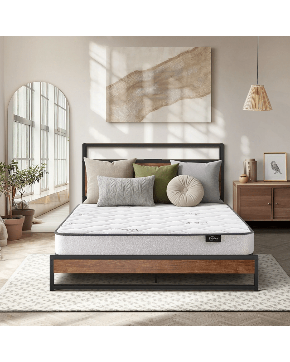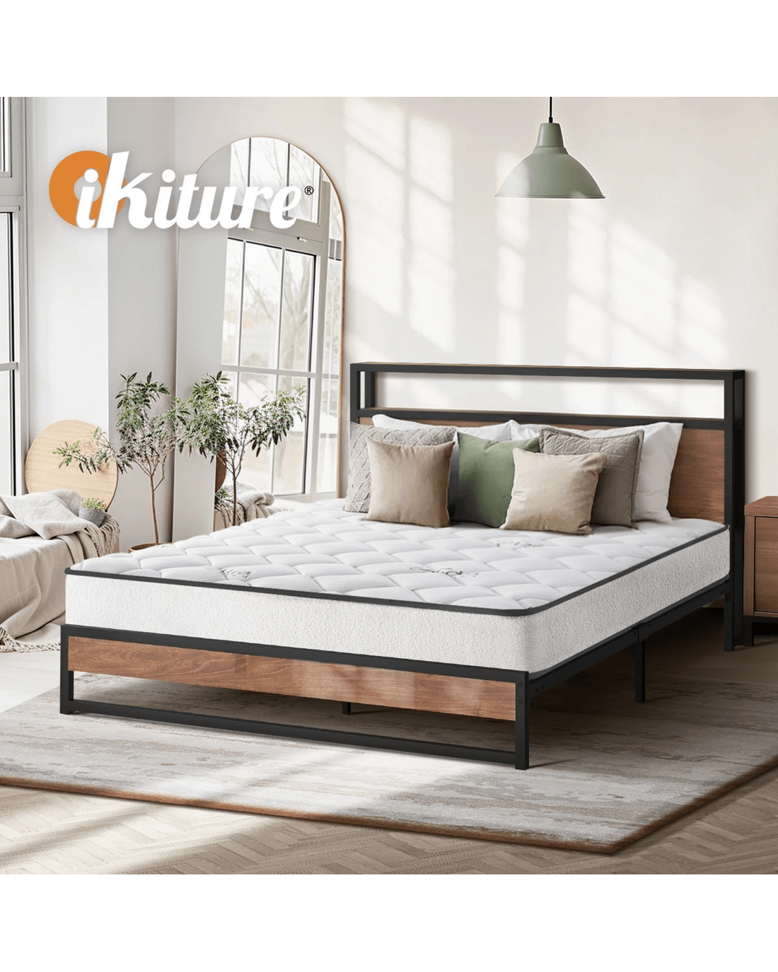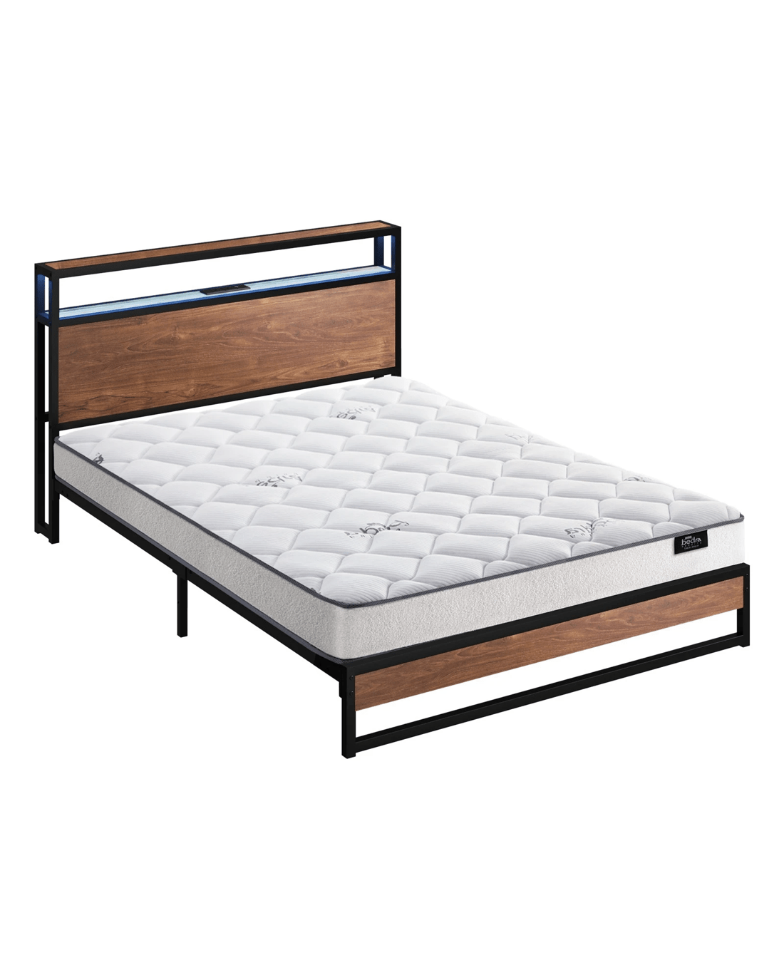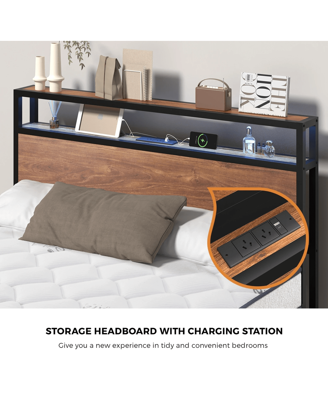 Sold by Kamprad's Oikos 1943Oikiture Metal Bed Frame King Size LED Storage USB with Mattress - Brown