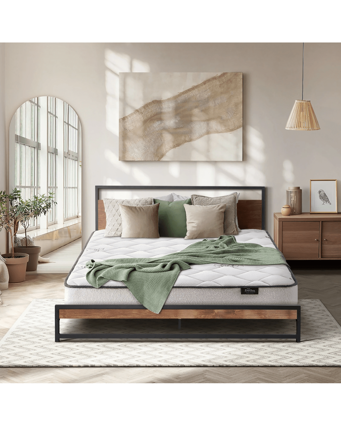 Best of all, the stylish bed frame also includes a single-size Bedra Bedding Bonnell Spring mattress to complete the set. This high-quality spring mattress comprises a 7-layer construction with all the benefits of a Bonnell spring coil system that provides motion isolation and full body support. Naturally, the highly breathable mattress complies with all required standards and certification and is hygienically safe from top to bottom and everything else in between. The Oikiture Metal Bed Frame. Made it yours to enjoy.