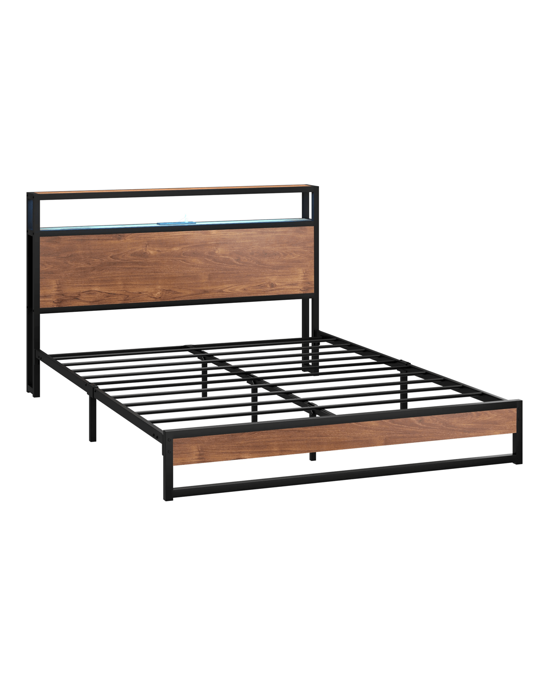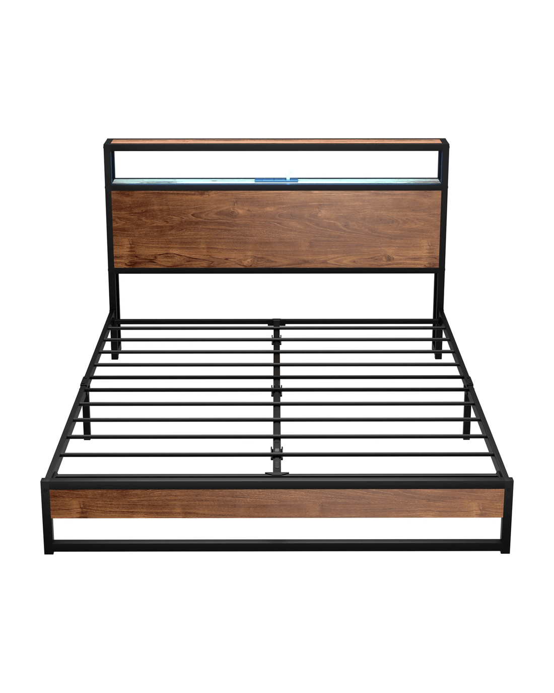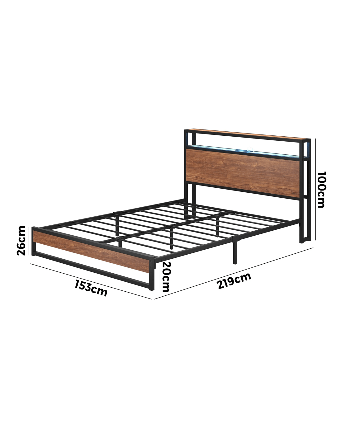 Sold by Kamprad's Oikos 1943Oikiture Metal Bed Frame Queen Size Led Light Storage Headboard Usb Charge - Black