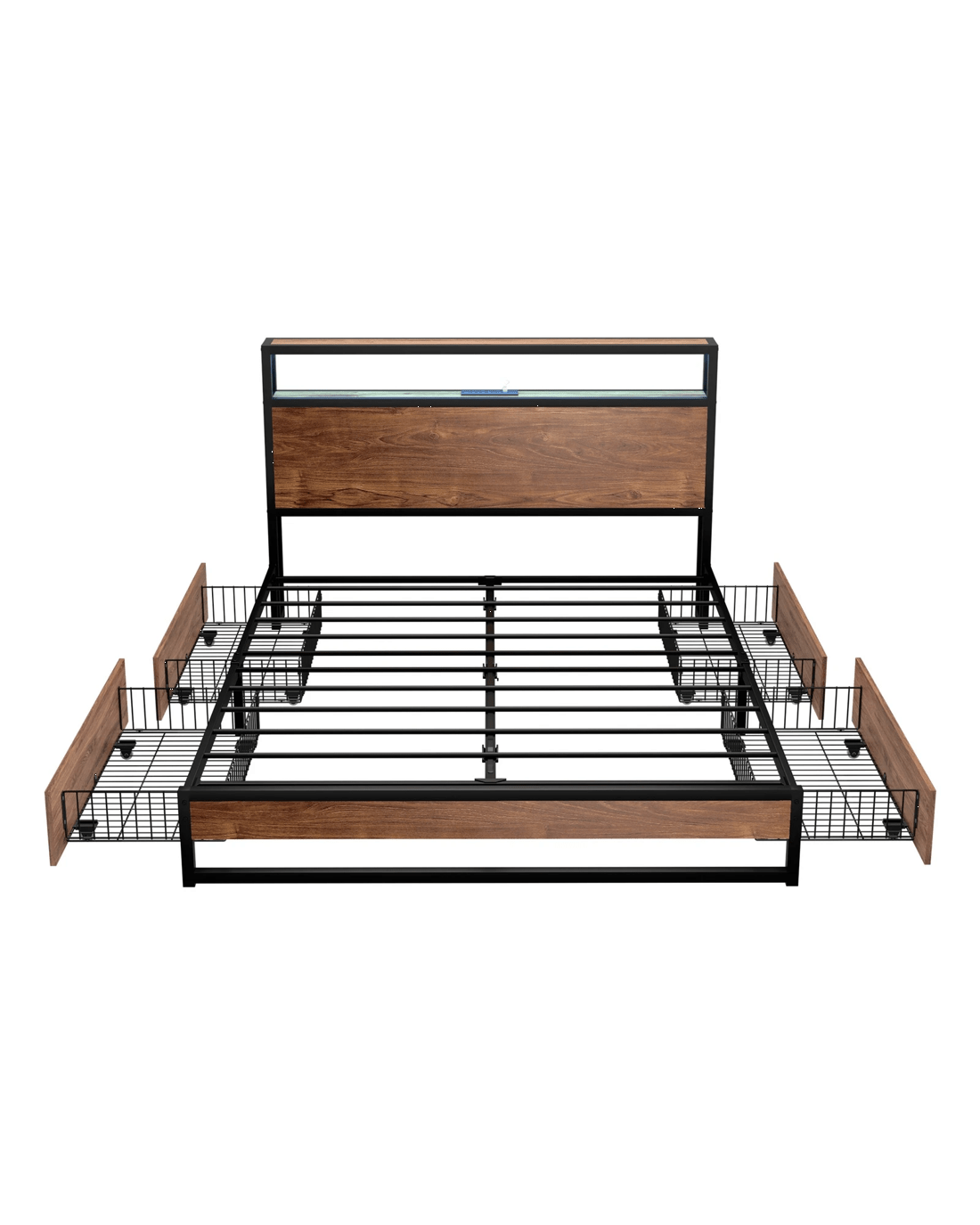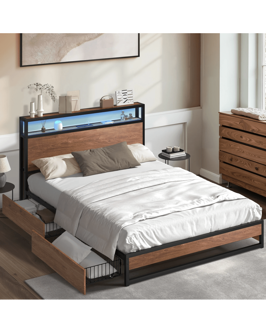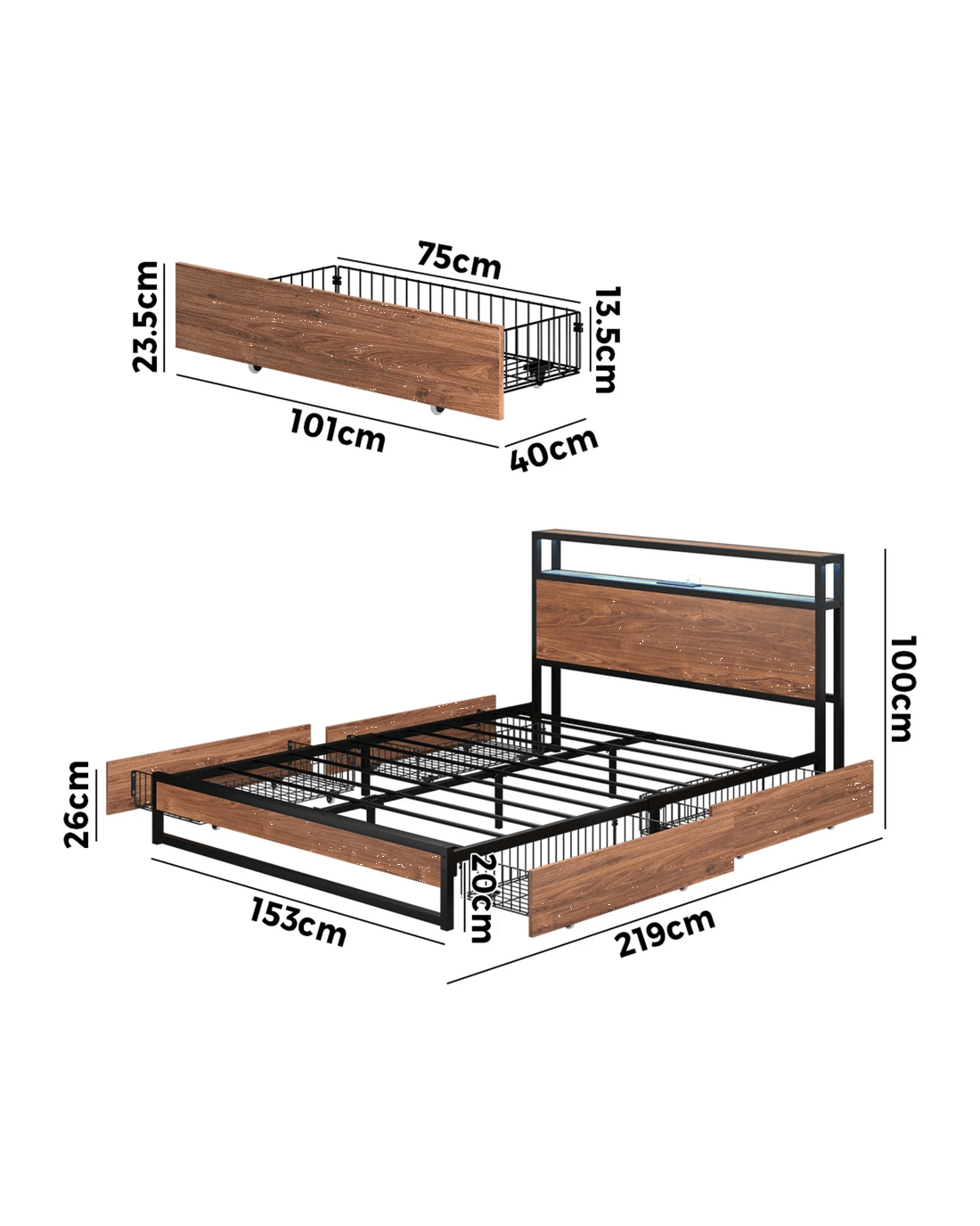 Sold by Kamprad's Oikos 1943Oikiture Metal Bed Frame Queen Size With Led Headboard Storage Drawers Usb - Black
