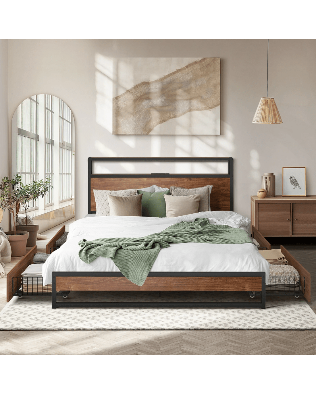 If there's a term to aptly describe this Oikiture Metal Bed Frame Set, it would be fascinating. Equipped with storage and lighting features, this multi-facet metal bed frame set is ready to brighten up your slumber time in brilliant style.