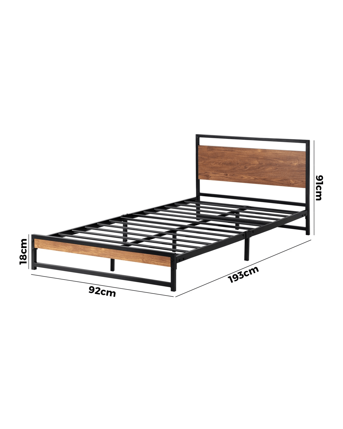 Sold by Kamprad's Oikos 1943Oikiture Metal Bed Frame Single Size Beds Base Platform - Black