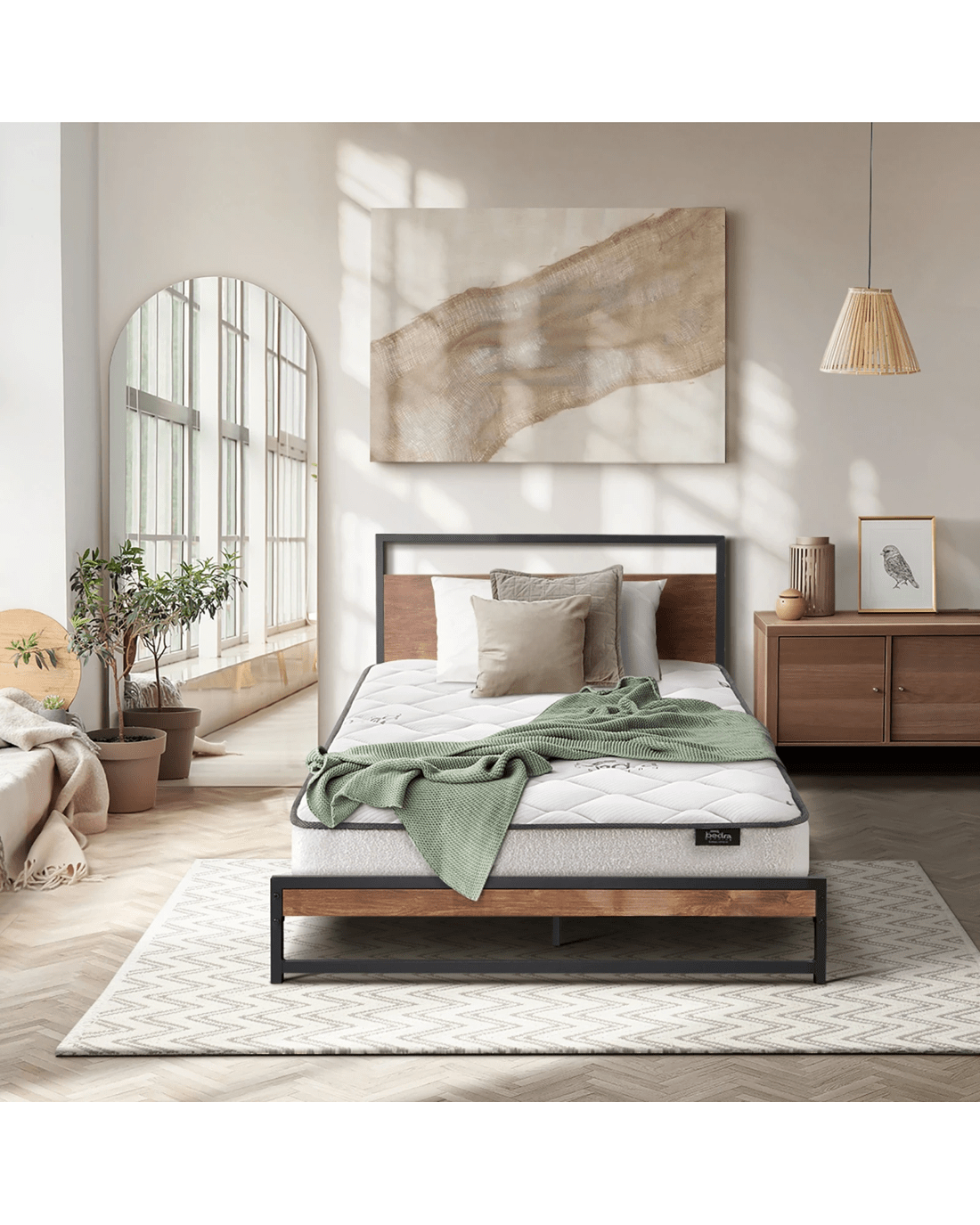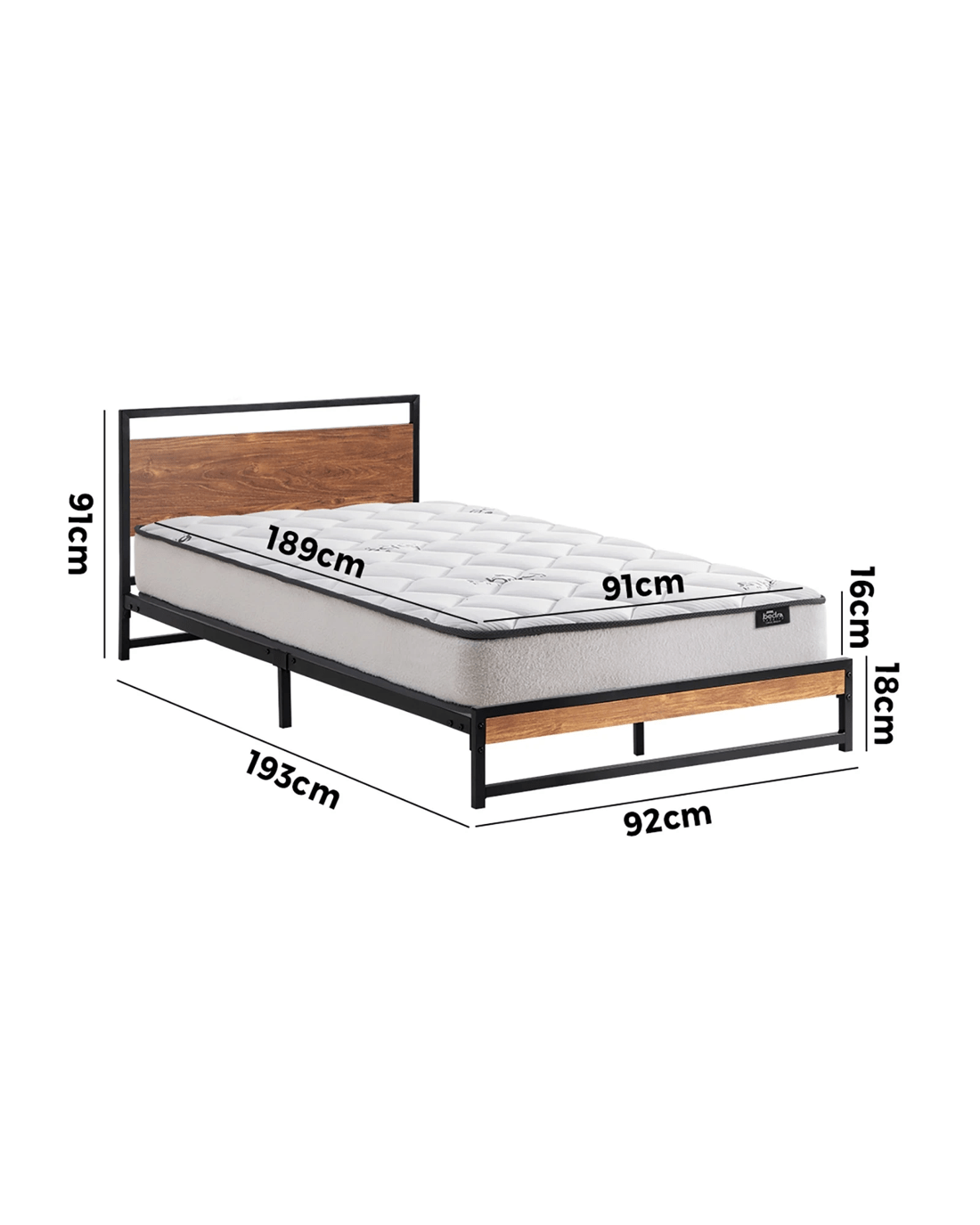 Best of all, the stylish bed frame also includes a single-size Bedra Bedding Bonnell Spring mattress to complete the set. This high-quality spring mattress comprises a 7-layer construction with all the benefits of a Bonnell spring coil system that provides motion isolation and full body support. Naturally, the highly breathable mattress complies with all required standards and certification and is hygienically safe from top to bottom and everything else in between. The Oikiture Metal Bed Frame. Made it yours to enjoy.