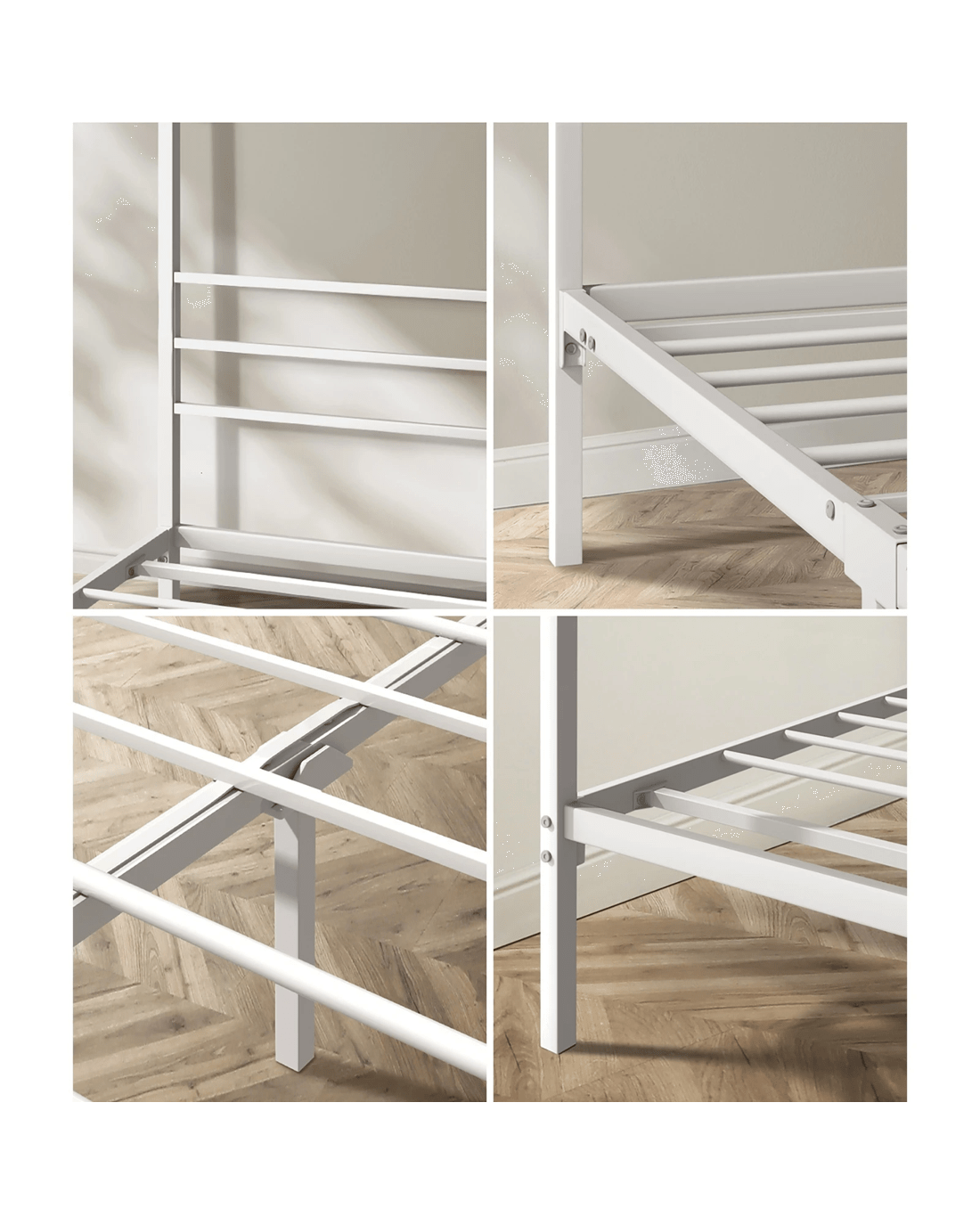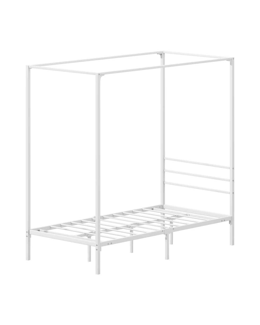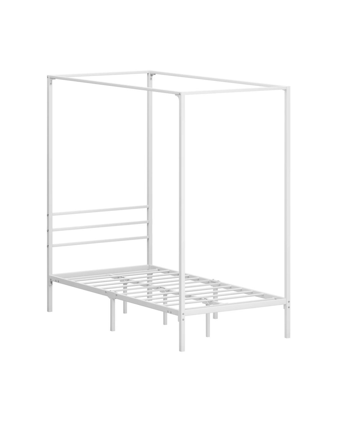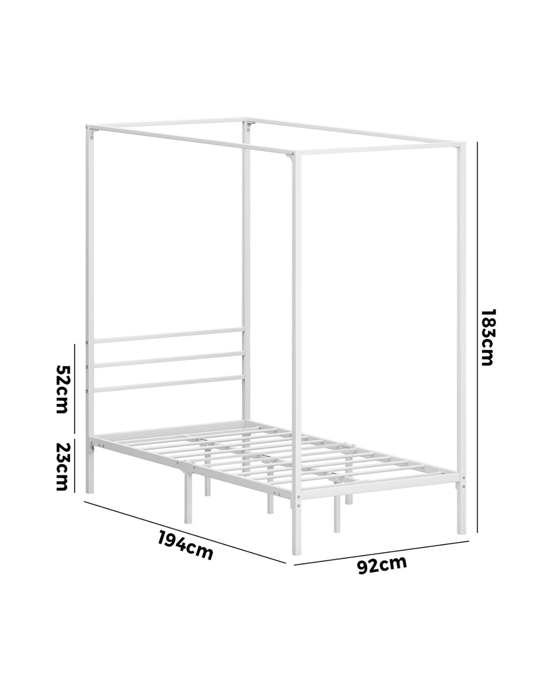 Sold by Kamprad's Oikos 1943Oikiture Metal Canopy Bed Frame Single Size Beds Platform - White