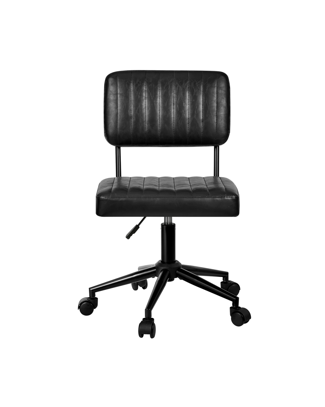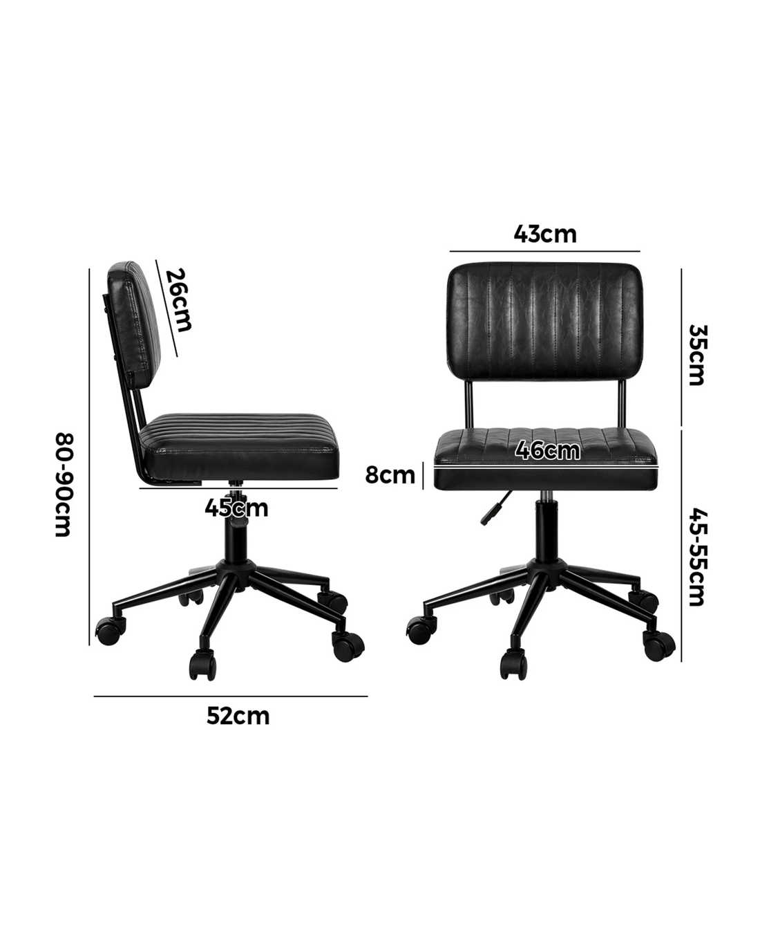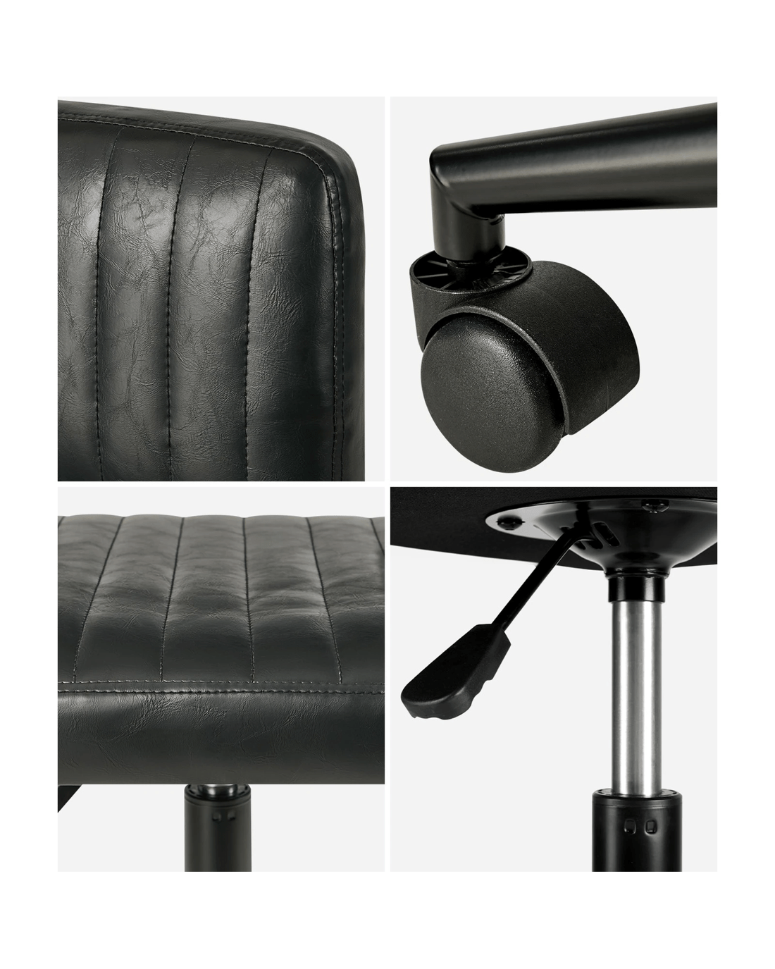 Upholstered in swanky faux leather for both the seat and backrest, the office chair exudes supreme comfort with style. The luxurious office chair features the armless design also allows the office chair to adapt to various spatial layouts, and be easily tucked entirely under the desk to save more floor space.