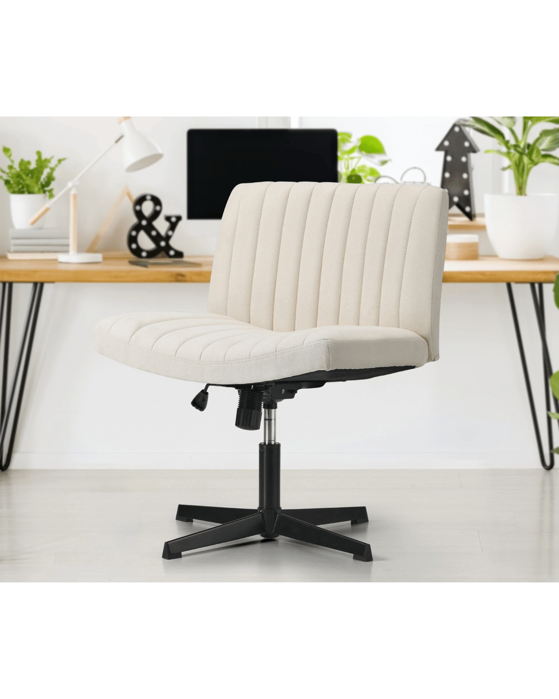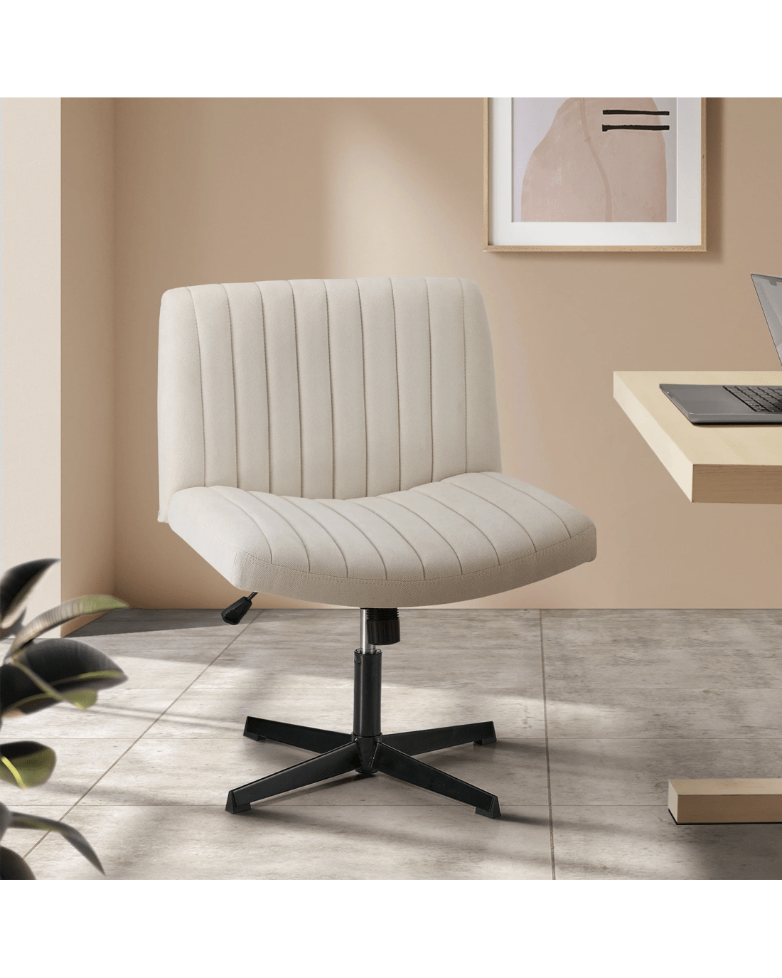 Oikiture Mid Back Armless Office Desk Chair Height Adjustable Wide Seat - Beige