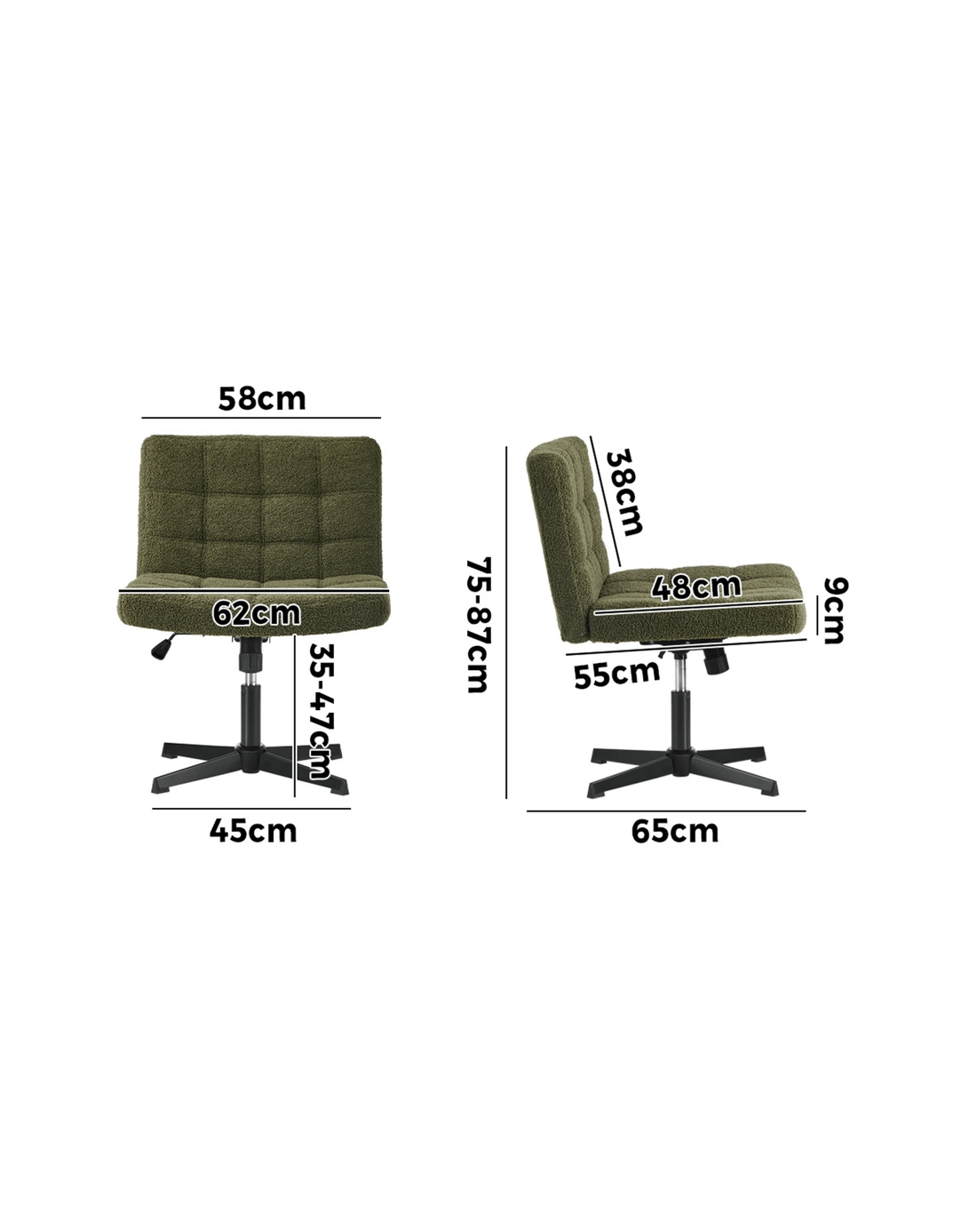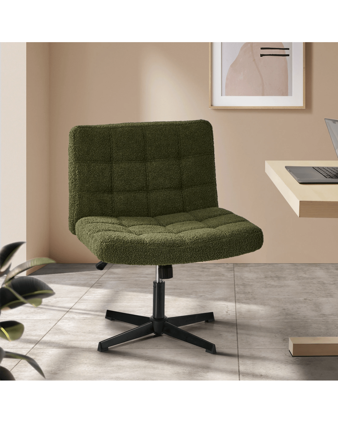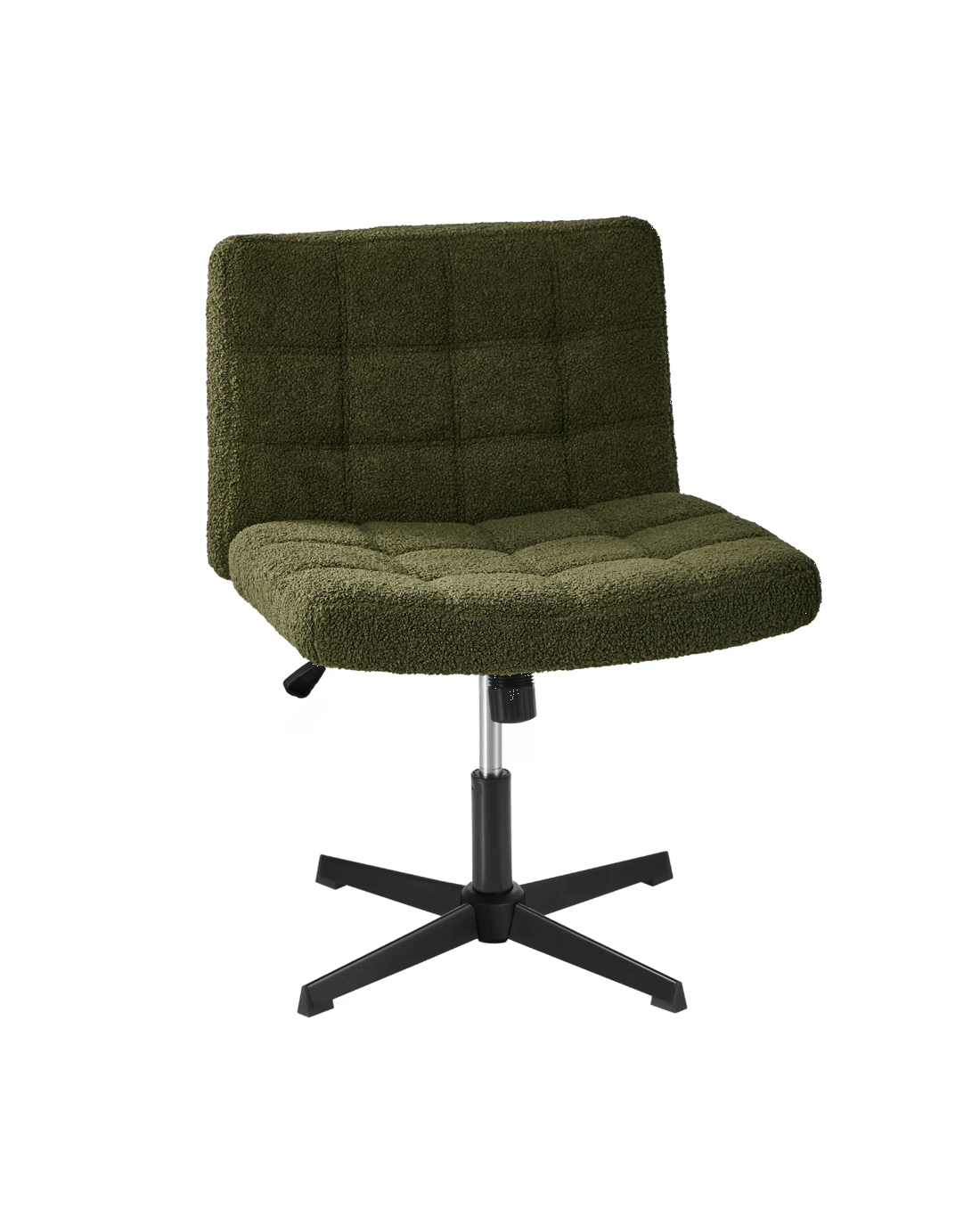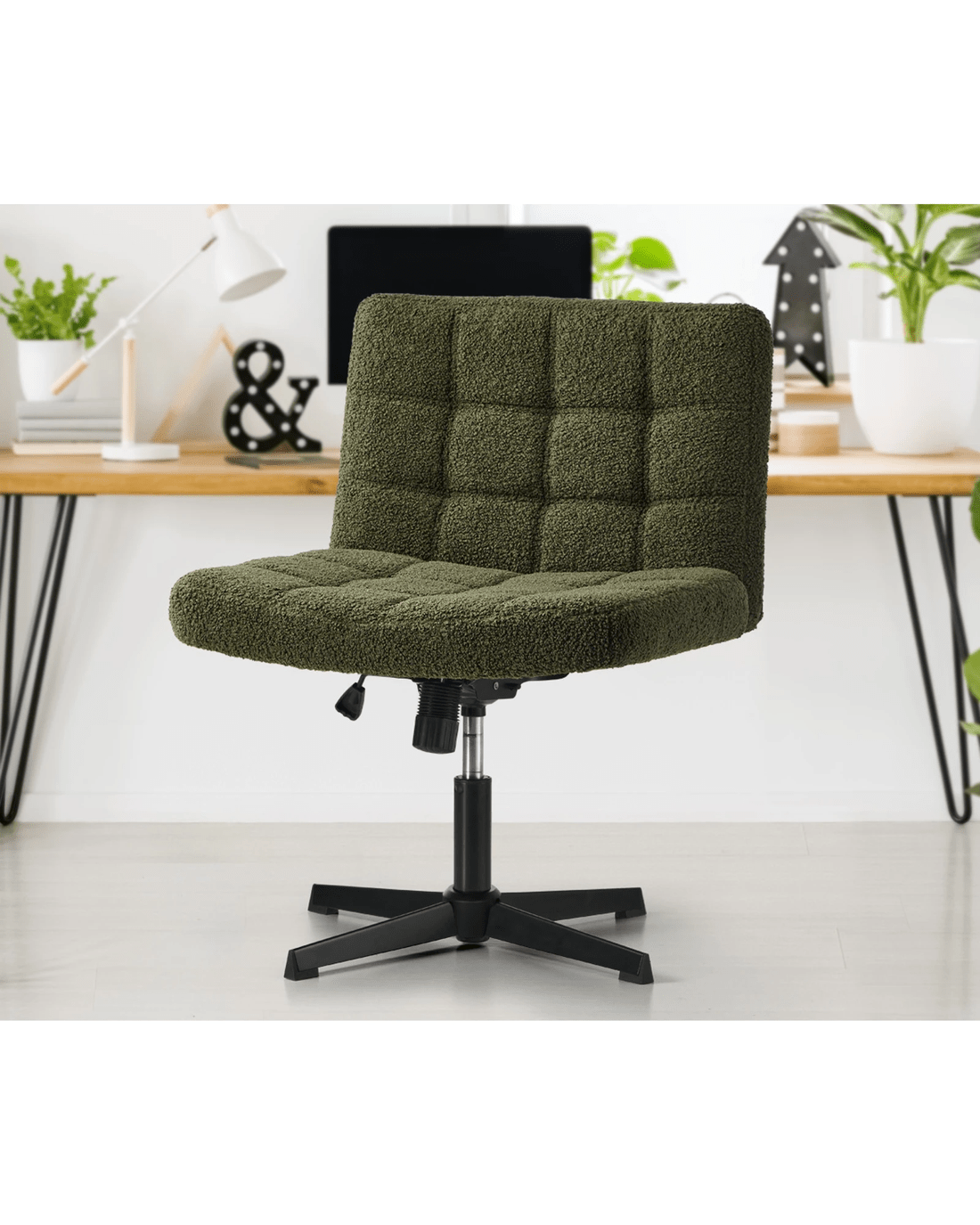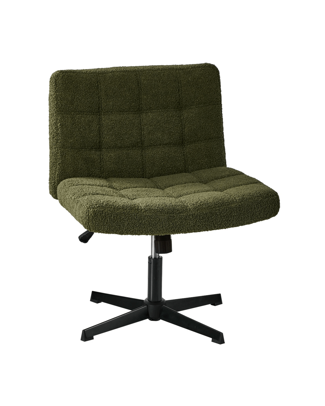 Oikiture Mid Back Armless Office Desk Chair Wide Seat Boucle No Wheels - Green